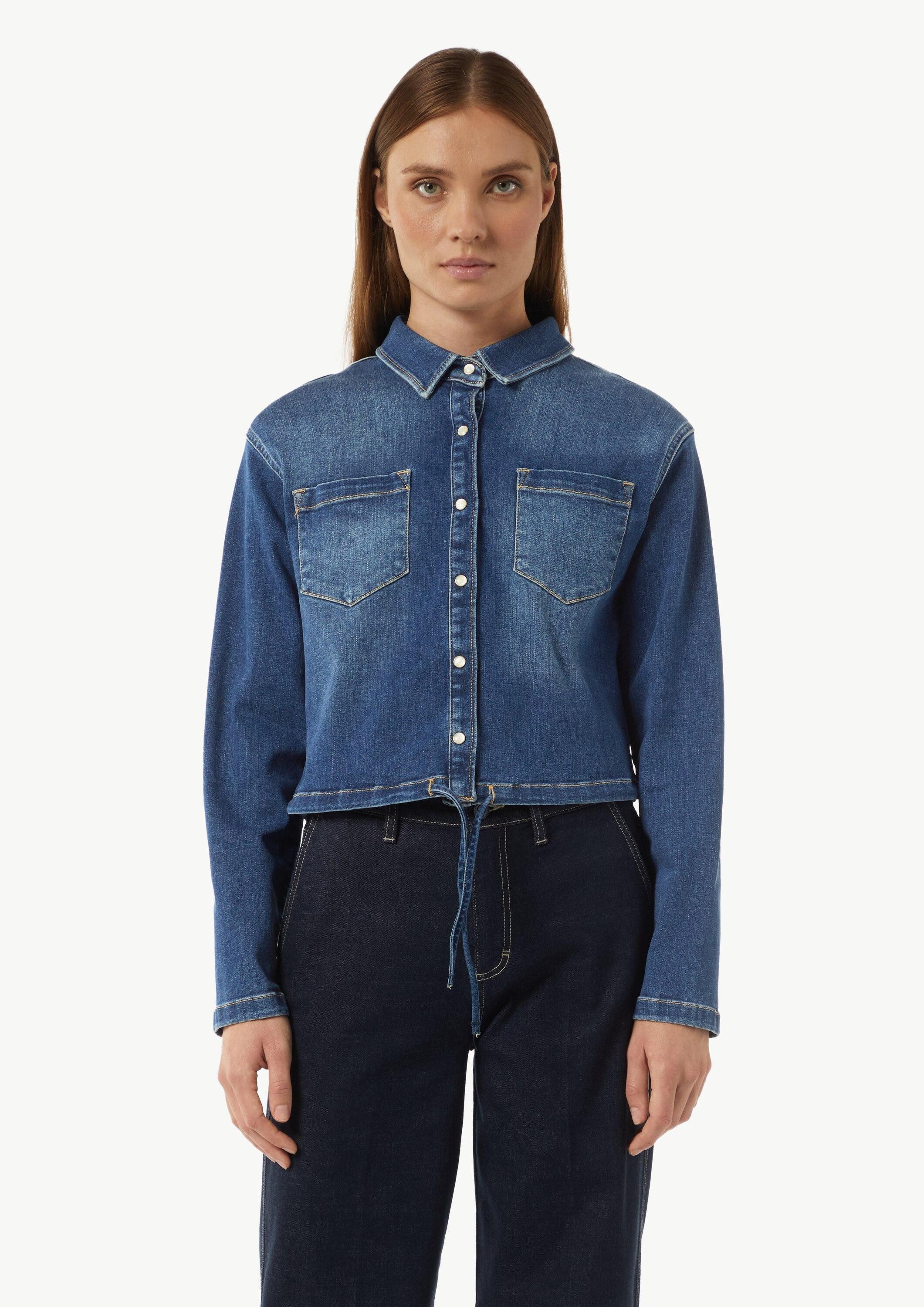 Schnittform Длина | Softe Blousson-Jeansjacke mit Druckknöpfen |