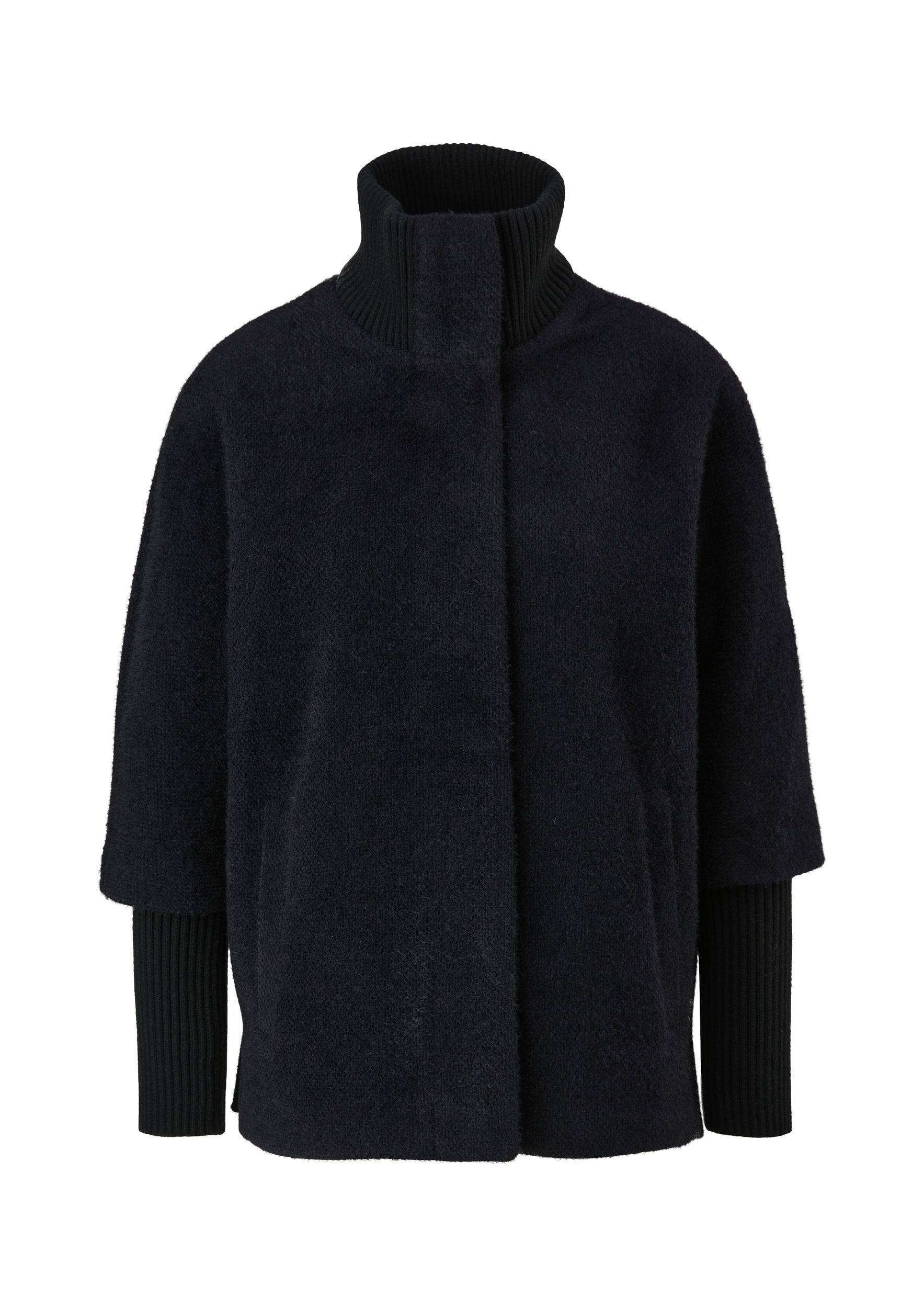 Wir feiern 50 Jahre comma: lassen Sie sich von unserer exklusiven, vom Archiv inspirierten Anniversary Collection begeistern! Neutrale Nuancen, die Verwendung hochwertigster Materialien sowie die gekonnte Kombination klassischer und moderner Elemente reflektieren unsere Historie. Selbstbewusst, feminin und elegant – das macht den unverwechselbaren comma Look aus. Aus Strukturstrick mit besonders softem Griff ist die Cape-Jacke ein Keypiece der Kollektion. Sie besticht mit einer formgebenden Silhouette im Egg-Shape, einem ¾-Arm und langen Strickbündchen.
