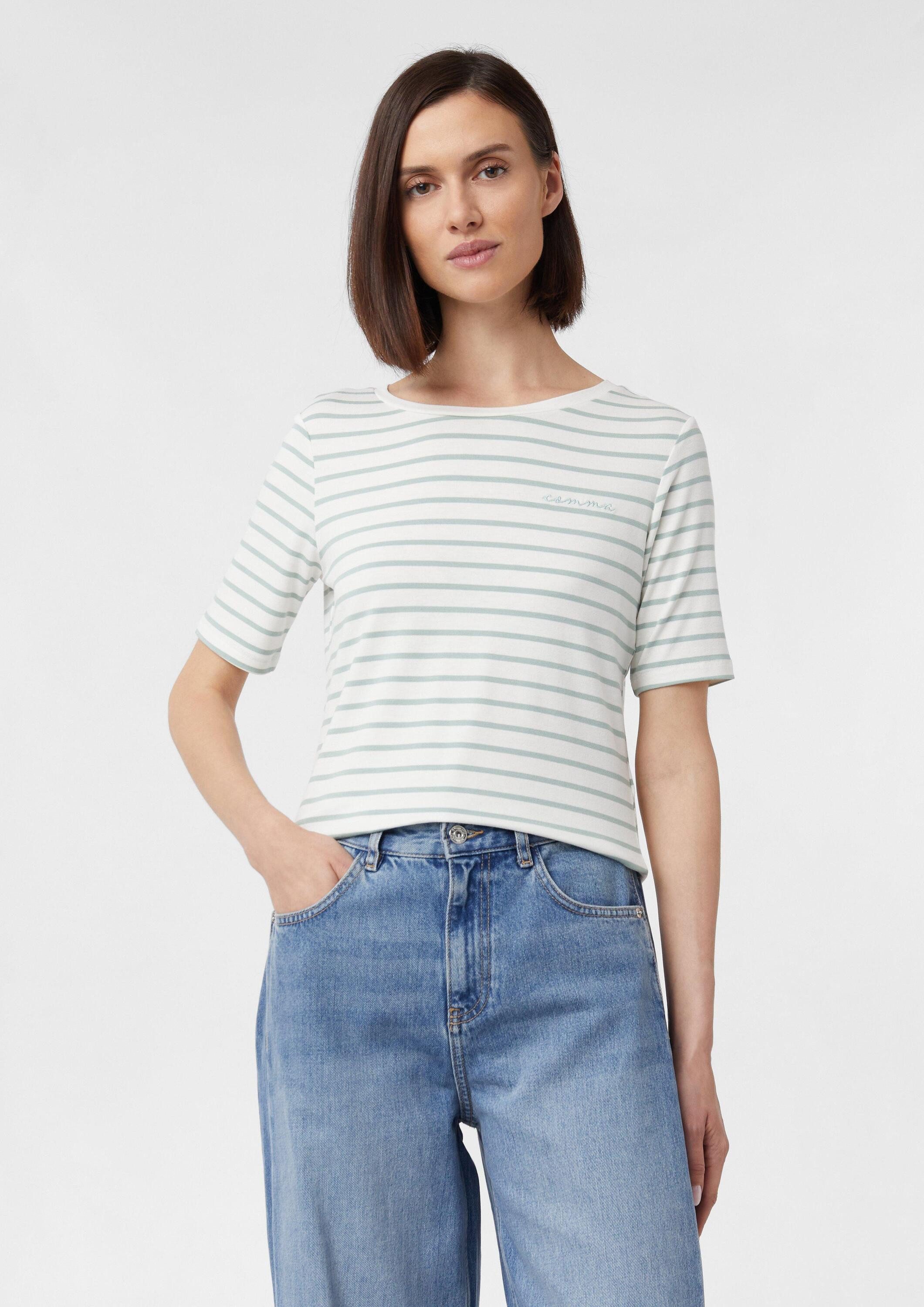 Schnittform Длина | Gestreiftes T-Shirt im Slim Fit mit Logo-Stickerei |