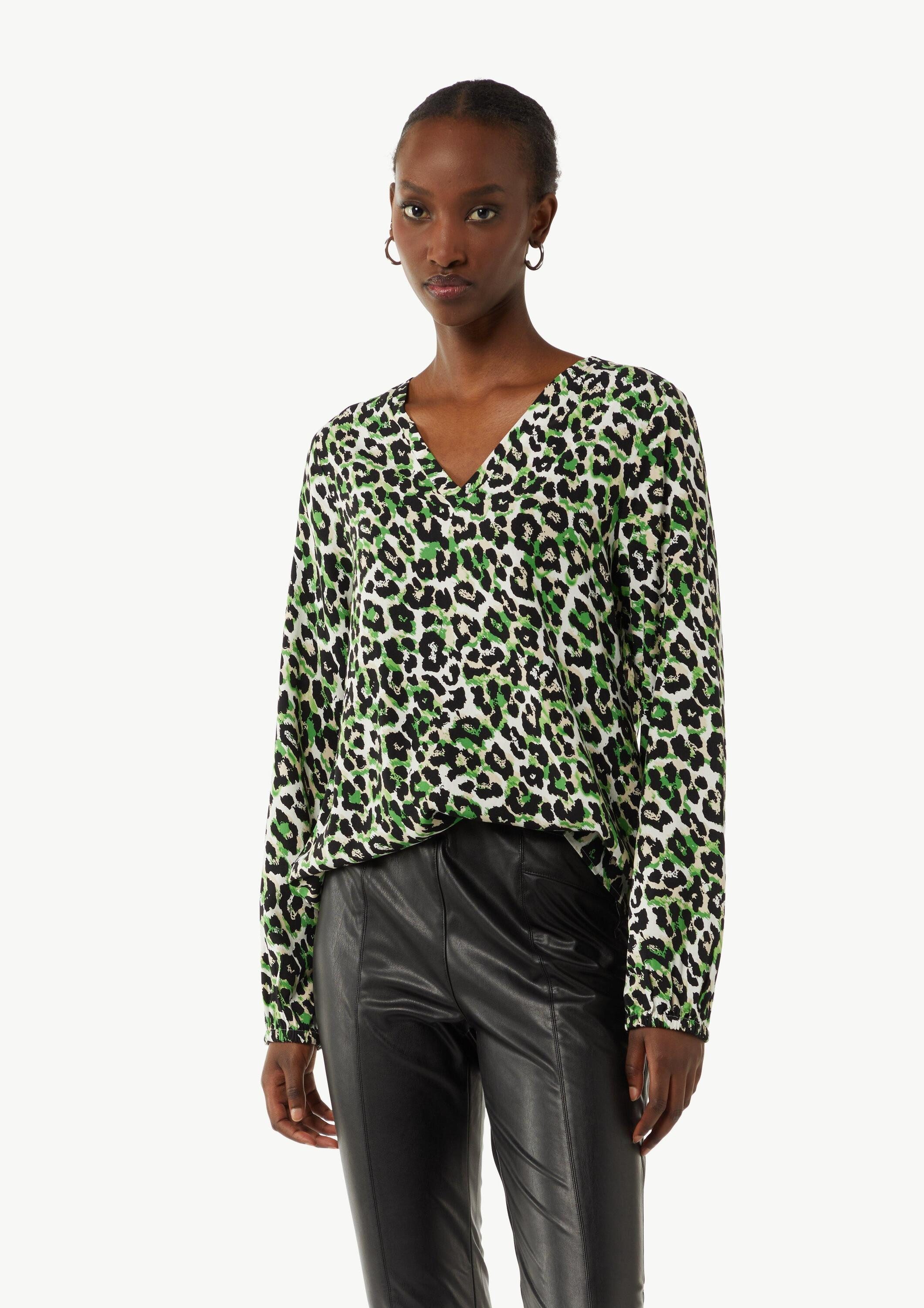 Besondere Merkmale | Viskosebluse mit Leo-Muster und V-Ausschnitt |