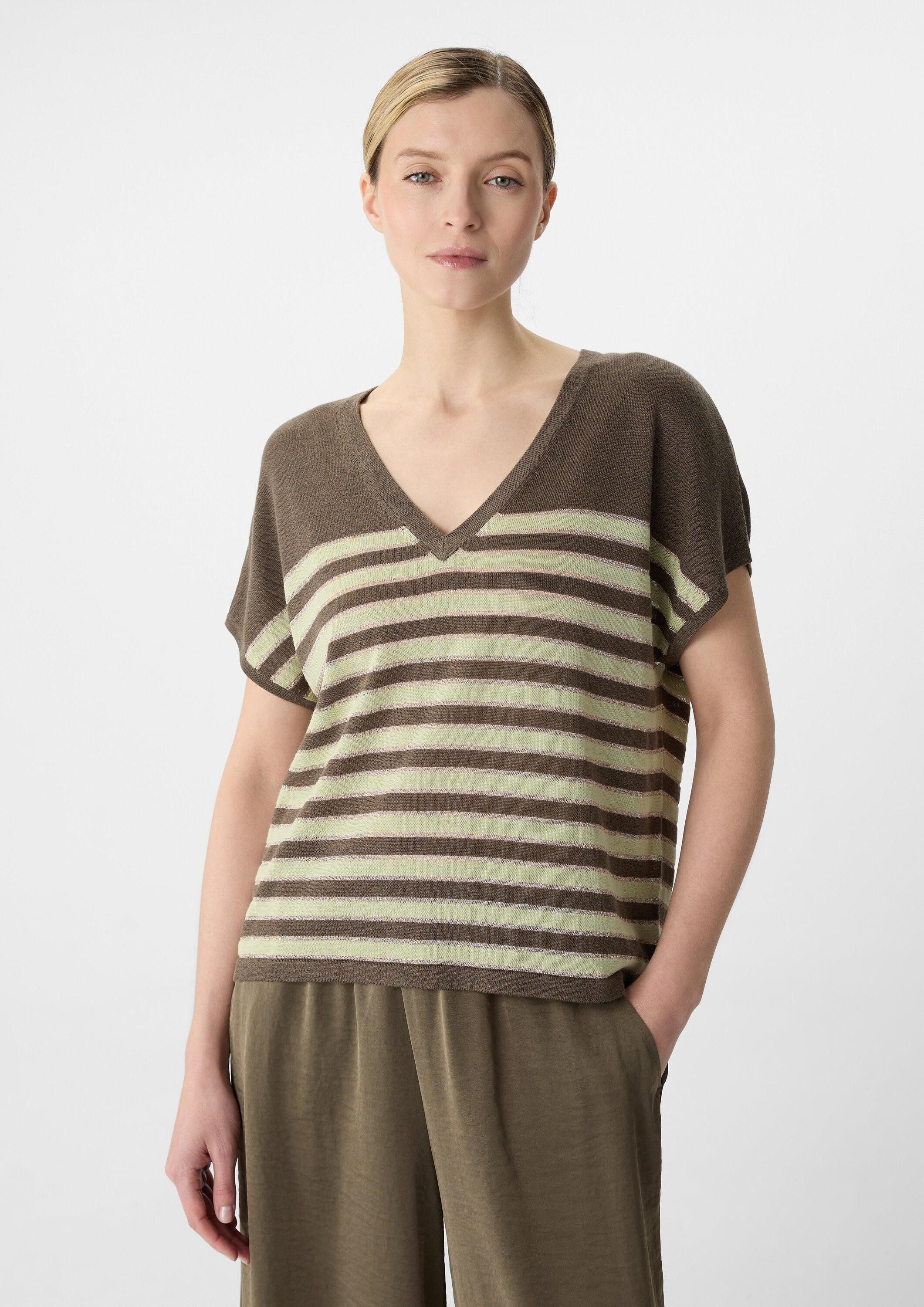 Schnittform Длина | Gestreifter Strickpullover mit Glitzergarn |