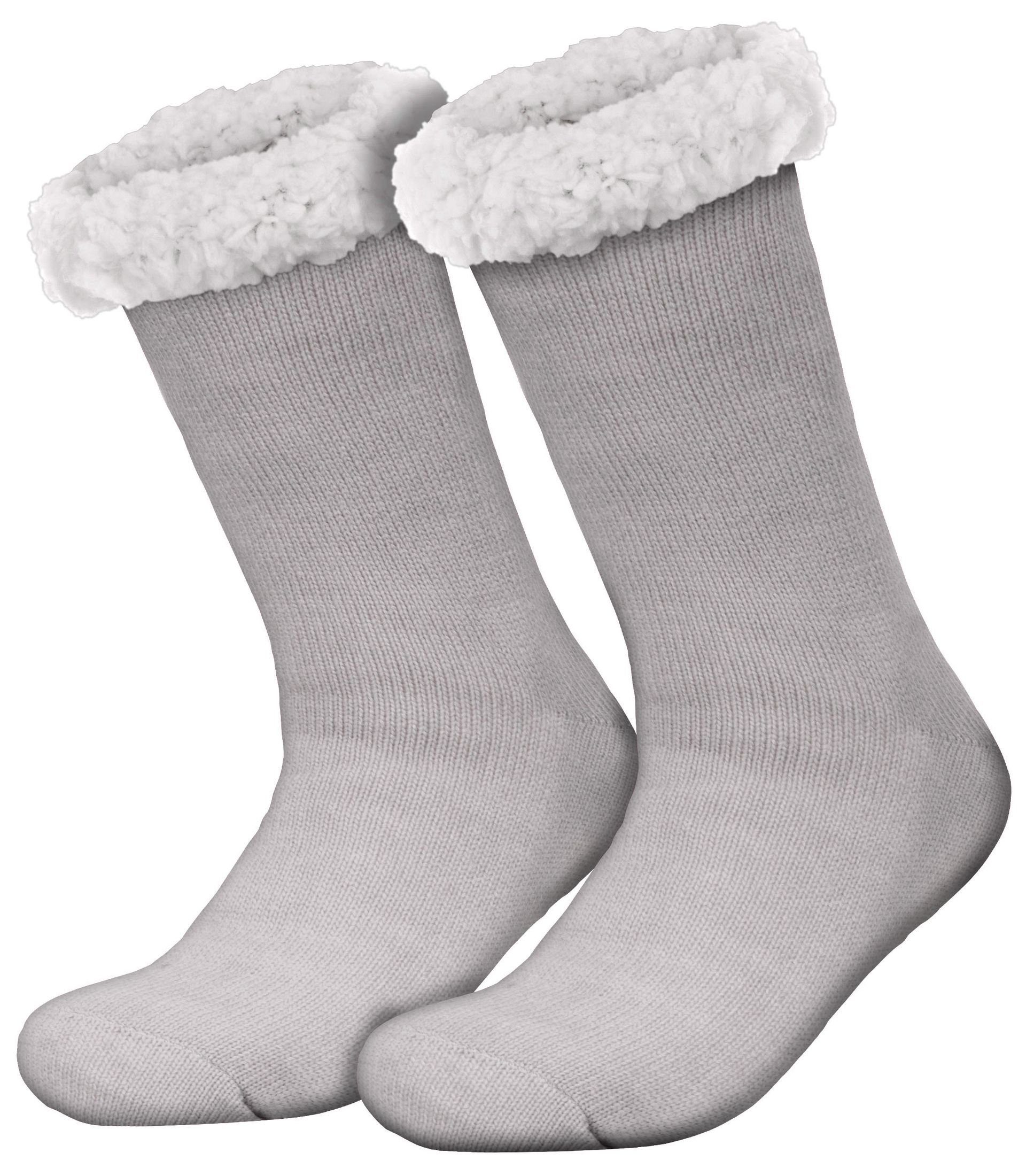 Viele Jahre in Vergessenheit geraten, erfreuen sich die früher als Norweger-Socken oder Lamm-Fell-Socken bekannten Thermosocken wieder absoluter Beliebtheit: kuschelig weich für kalte Tage im Herbst und Winter. Durch ABS Noppen werden sie zu idealen Anti-Rutsch-Socken auch auf glatten Böden, Parkett oder Fliesen. Tolle Stoppersocken mit verschiedenen Mustern und Farben als Damen-Socken, Herren-Socken und Kinder-Socken. Zuhause überall bequem zu tragen, ob auf der Couch, im Bett, in der Küche oder auf dem kalten Kellerboden - angenehm wärmend und klimaregulierend und führen daher nicht zu schwitzgen Füßen. Das ideale Geschenk für die ganze Familie, zu Weihnachten, Nikolaus, Geburtstag, Silvester oder für jeden Anlass zu dem sie ihren Liebsten etwas Wärme schenken möchten. Stoppersocken sind für jedes Alter bestens geeignet und werden zu ihren liebsten Begeitern durch die kalte Jahrezeit. Auch für ihre Eltern, Großeltern, Oma und Opa eine tolle Überraschung. Ideale Wintersocken in Einheitsgröße für Damen und Herren, Kinder, Jungen und Mädchen mit Norweger-Muster, Renntieren, Weihnachts-Muster für kalte Füße. Zusammensetzung: 100% Polyacryl, Fell-Futter 100% Polyester – Всеrgiker geeignet im Gegensatz zu Baumwoll-Socken, Lammfell-Socken oder Wolle. Home Cosy Socks - freuen Sie sich auf die kühlen Tage und Woche, auf Schnee draußen und wohlige Wärme drinnen.