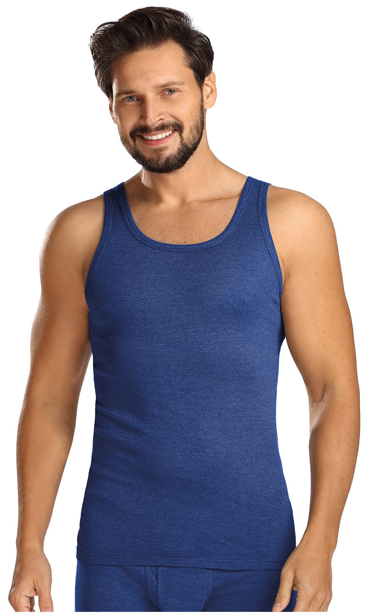 Die Unterhemden sind in einem klassischen Feinripp-Design gehalten und die garngefärbte Ringel sorgen für eine moderne Optik. Die formstabilen Achselshirts haben keine Seitennähte und die strapazierfähige Baumwollmischung bleibt auch nach häufigem Waschen weich und angenehm. Dieses Shirt ist wunderbar geeignet zum Tragen unter dem Hemd im Büro, als Schlafshirt oder solo an heißen Tagen.