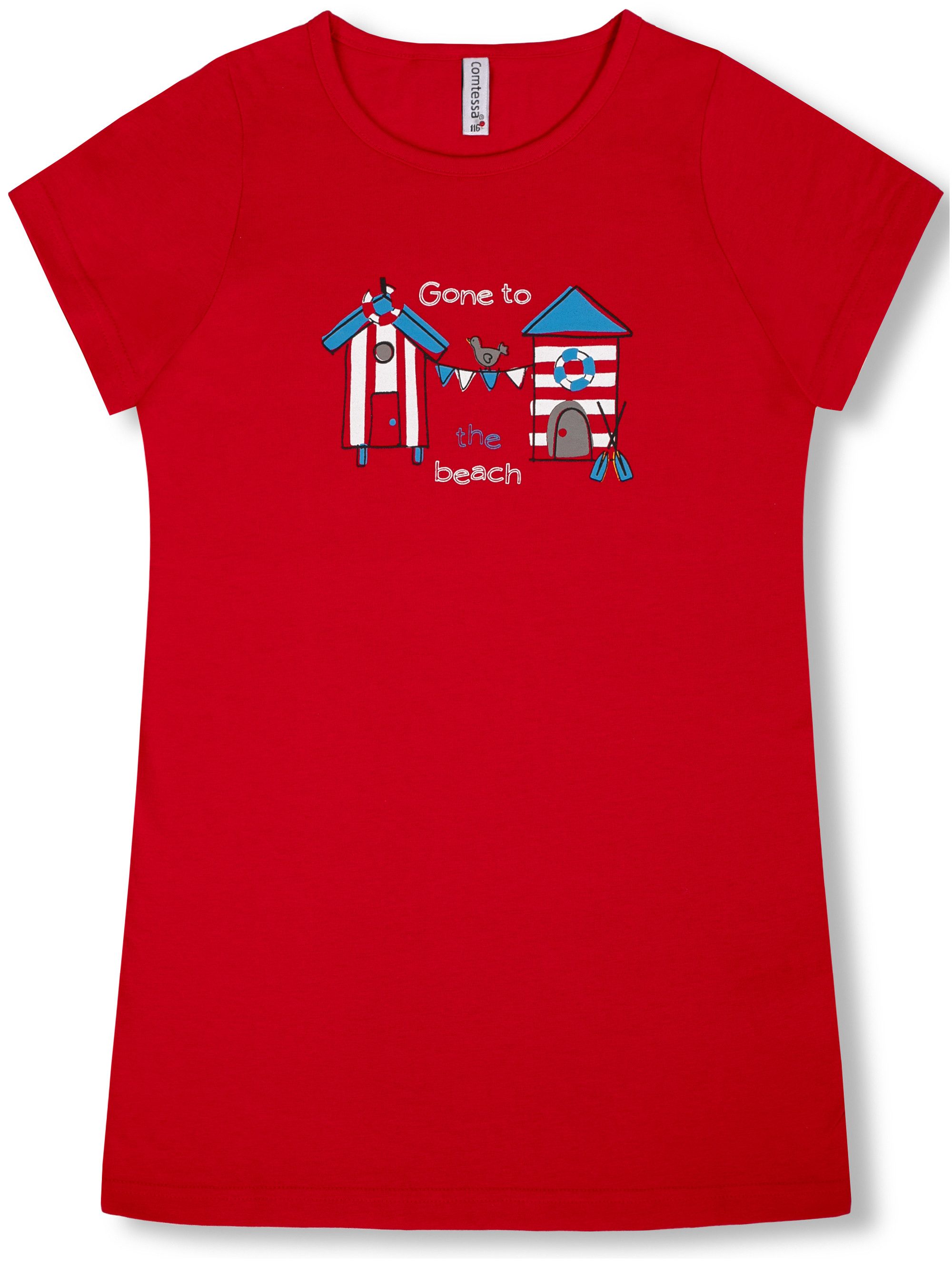 Das Nachthemd ist mit kurzen Ärmeln und einem bequemen Rundhalsausschnitt versehen, der für eine angenehme Passform sorgt und genügend Bewegungsfreiheit bietet. Ein besonderes Highlight ist der charmante Strandhäuschen-Druck auf der Brust, der dem Nachthemd eine verspielte und sommerliche Note verleiht. Dieser niedliche Druck wird Ihre Tochter garantiert zum Träumen bringen und sie an sonnige Tage am Meer erinnern.
