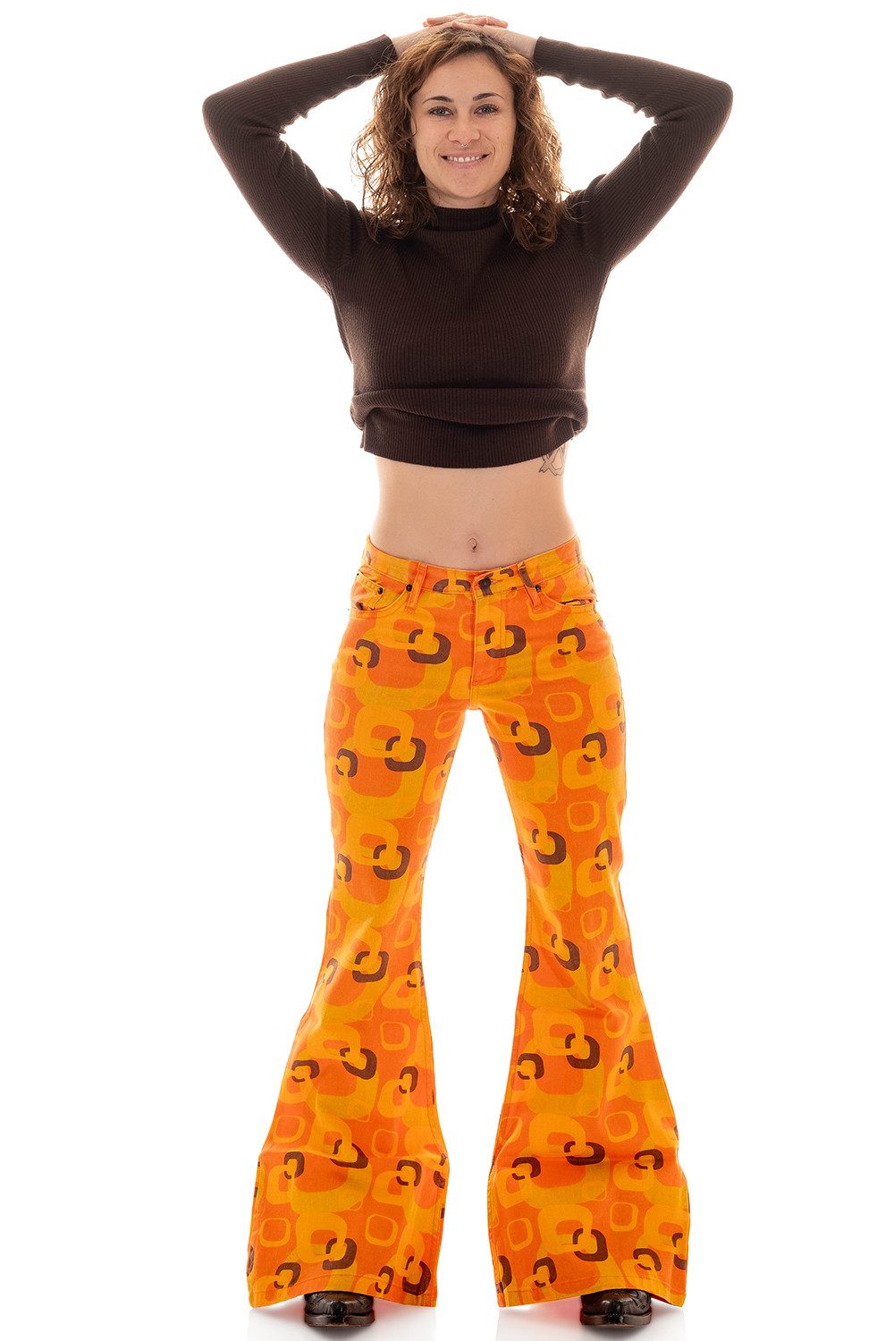 70er-Jahre Style: Damen Schlaghose mit buntem 70er-Jahre Muster