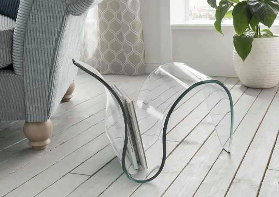 Der schwungvoll gebogene Beistelltisch aus dem Hause INOSIGN beeindruckt mit einem extravaganten Design. Er besteht aus einer formgebogenen Klarglasplatte, die im Profil eine S-Form zeigt. In eine der Wölbungen lassen sich Bücher oder Zeitschriften einlegen. Unter dem Tisch können beispielsweise Dekorationen oder Pflanzen einen Platz finden. Seine pflegeleichten Oberflächen machen dieses Kleinmöbel alltagstauglich und erleichtern die Reinigung. Es kann neben einer Wohnlandschaft, im Arbeitszimmer oder im Flur einen angemessenen Platz finden. Mit dem schwungvoll gebogenen Beistelltisch aus dem Hause INOSIGN erhält jede Einrichtung eine formschöne Bereicherung.