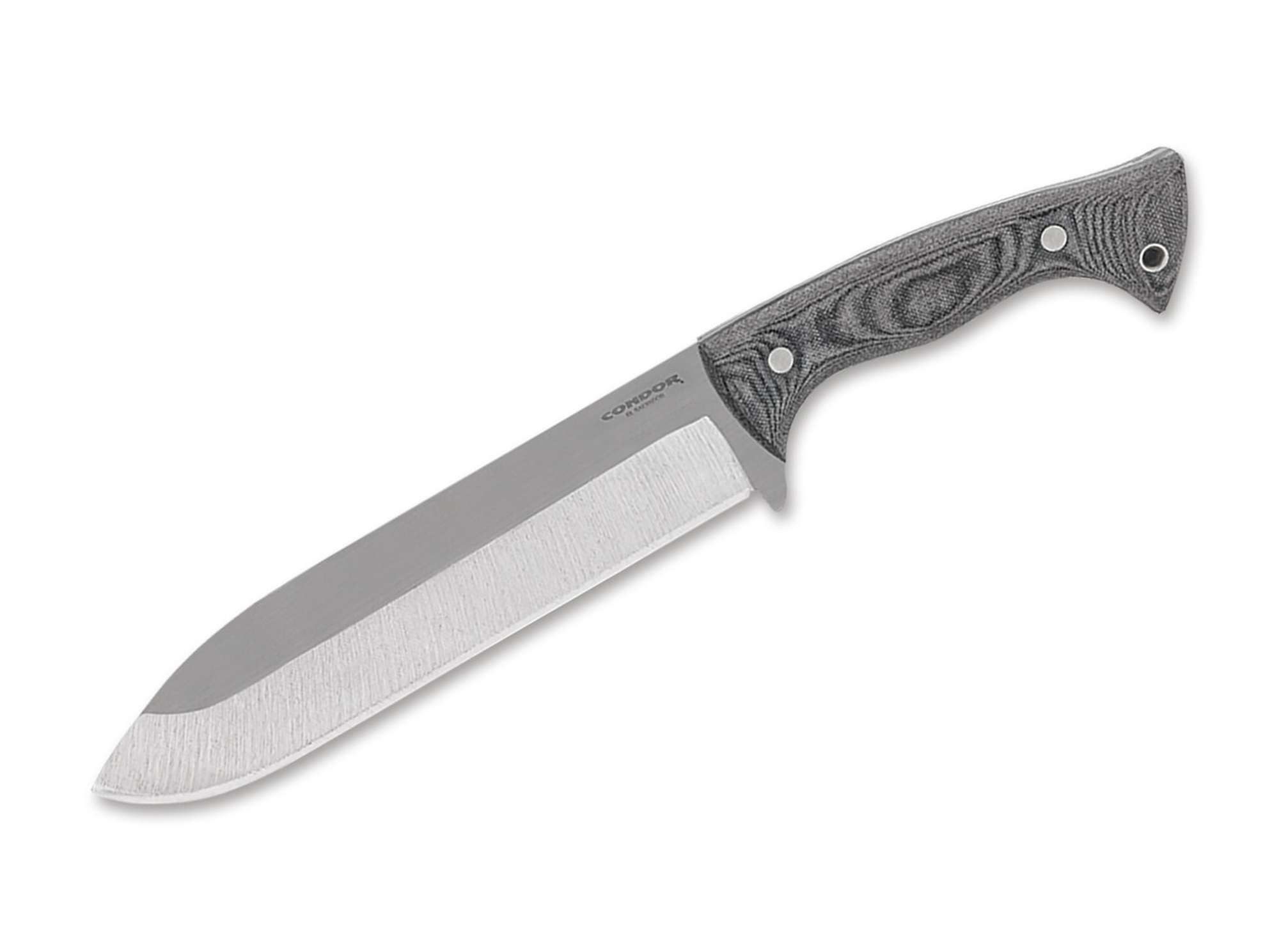 Condor präsentiert ein beeindruckendes Outdoormesser mit bissiger Klinge aus 1075 Kohlenstoffstahl und einem grauen Micarta-Griff in Fellmuster. Das bevorzugte Jagdgebiet des Bushcraftmessers in Vollerlbauweise ist ausschließlich in der Wildnis zu finden und ist mit unstillbarem Hunger auf Unterholz und Astwerk ausgestattet. Mit Fangriemenöse und passgenauer Kydexscheide