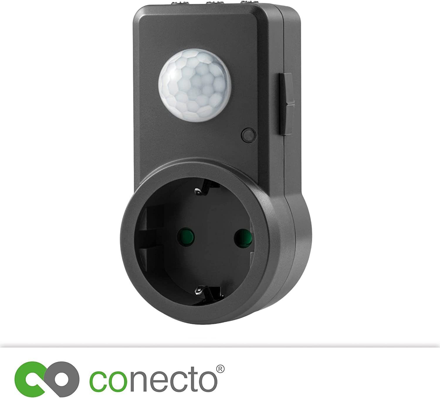 conecto Infrarot-Bewegungsmelder Zwischenstecker CC-IM060 - Innenmontage in Steckdose, grau, Schutzklasse: IP20, 120° / 9m Arbeitsfeld