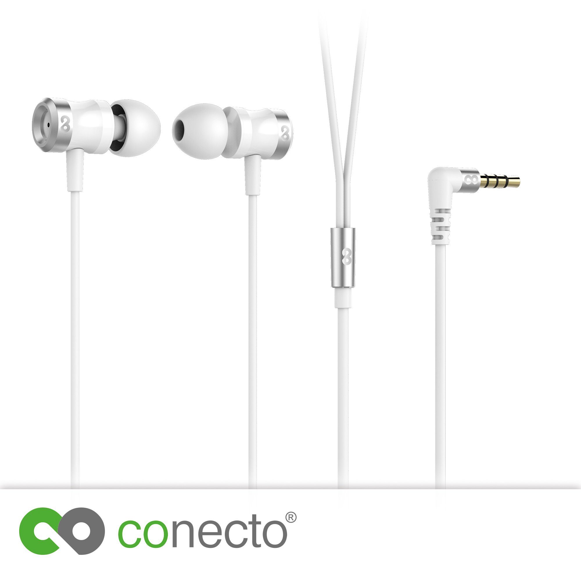 conecto In-Ear Ohrhörer / Earphones für alle Geräte mit 3,5mm Klinkenanschluss kombinieren kristallklaren Klang mit optimalem Tragekomfort und einem modernen Alu-Design - Farbe: weiß