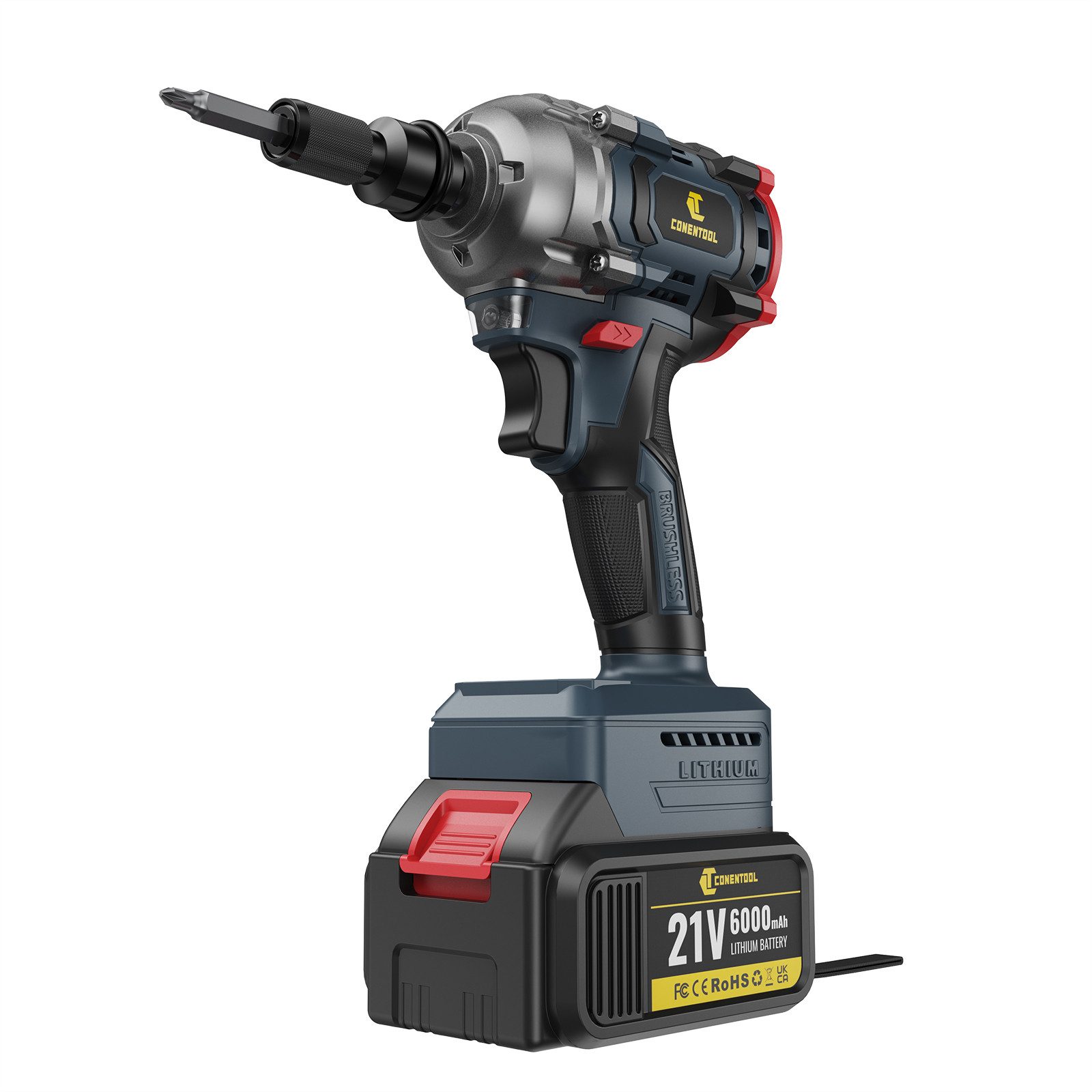 CONENTOOL Akku Schlagschrauber 620 Nm – Erleben Sie kraftvolle Leistung mit 21V und 2*6000mAh Akku. Der 1/2 Zoll Schlagschrauber bietet ein integriertes LED-Arbeitslicht für optimale Sicht. Inklusive 6 Stecknüssen (14/17/18/19/21/22 mm) für vielseitige Anwendungen. Ideal für Profis und Heimwerker!