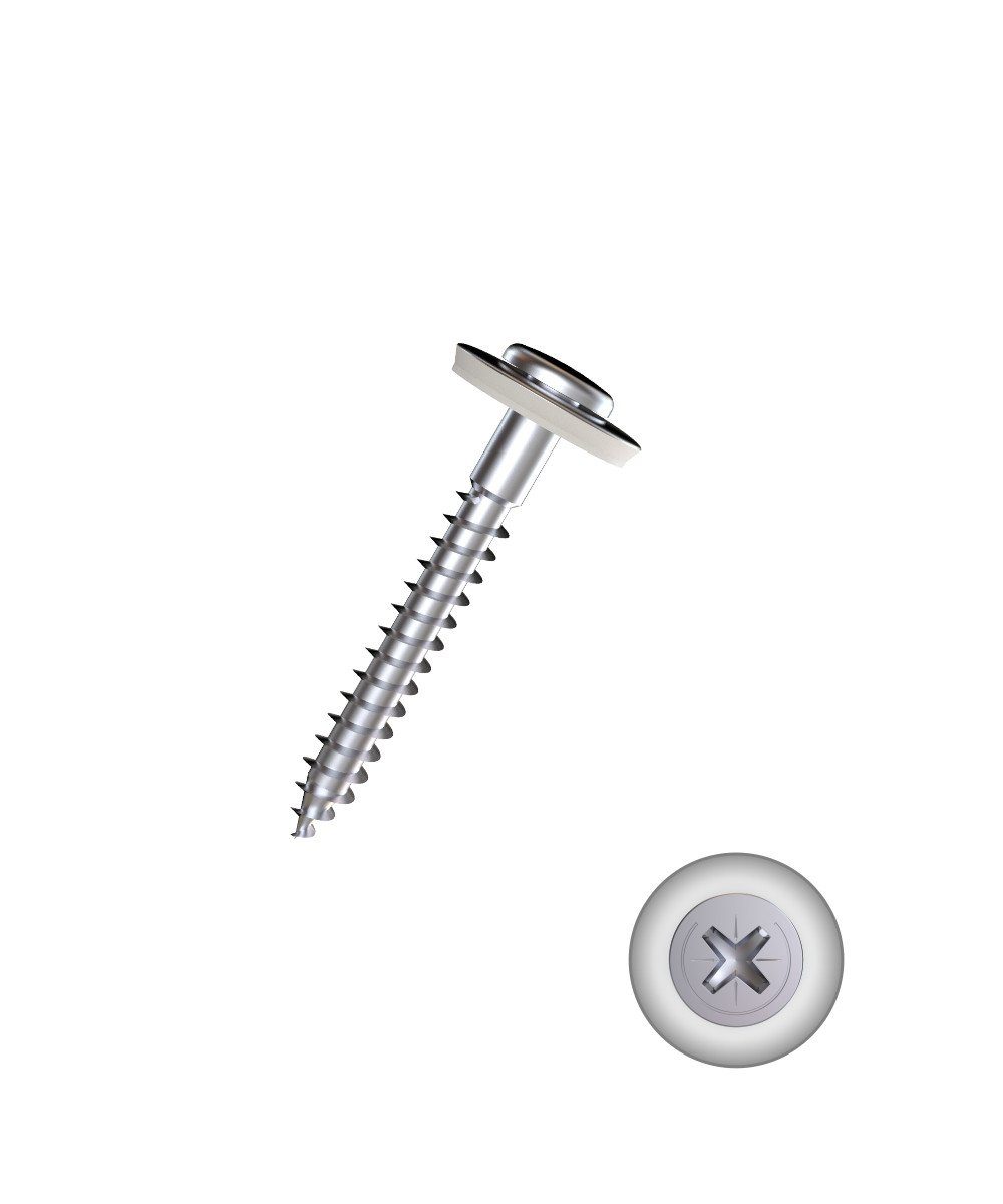 Produktdetails: Maße: 4,5 x 40 mm | Antrieb: PZ 2 | Inhalt: 10 Stück | Kopfart: | Edelstahl A2 | mit Dichtungsscheiben |