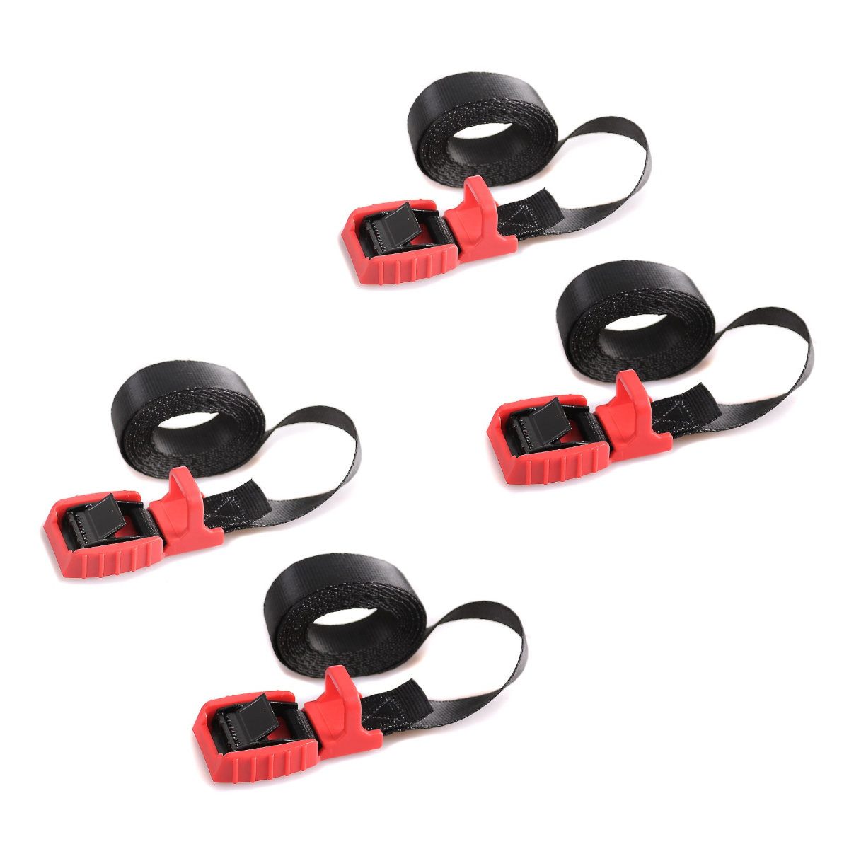 ConStands Motorradheber 2x Motorrad Spanngurt Set # mit Ratsche und Gummischnalle schwarz-rot