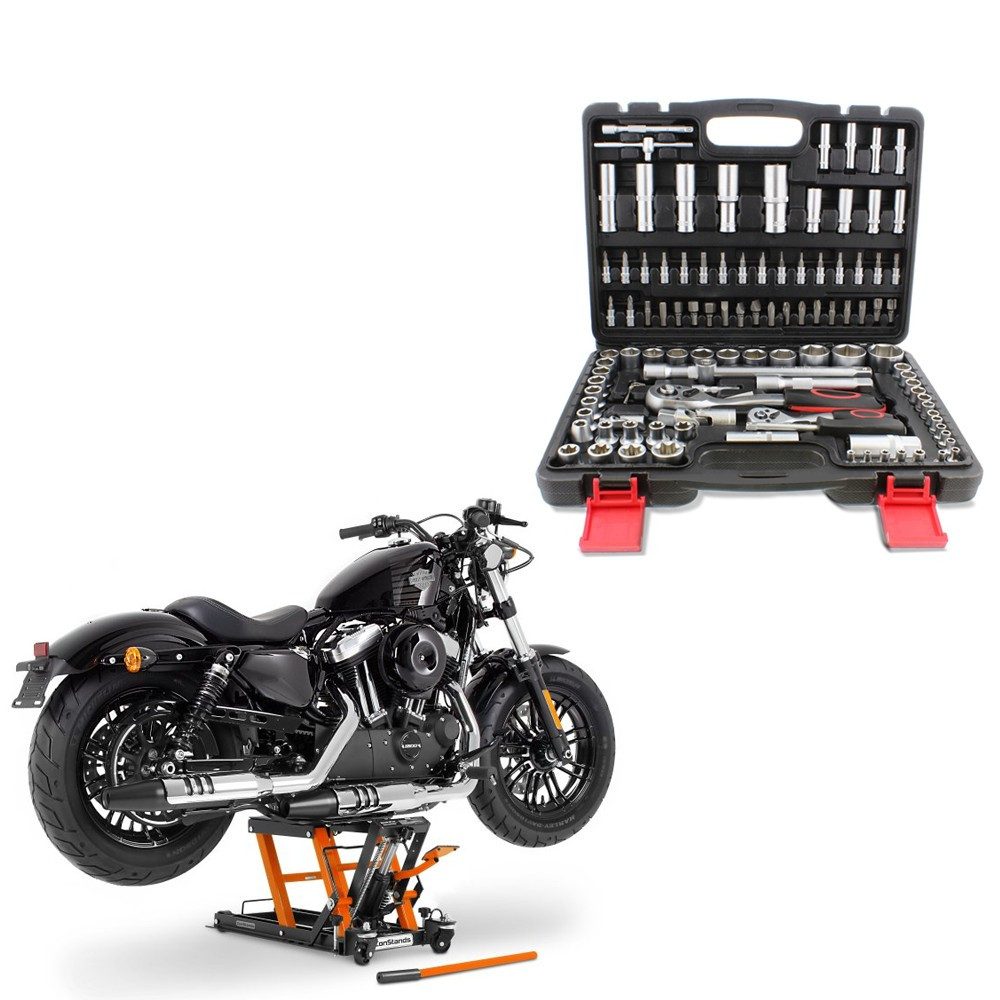 Motorradheber Hebebühne orange + Steckschlüsselsatz