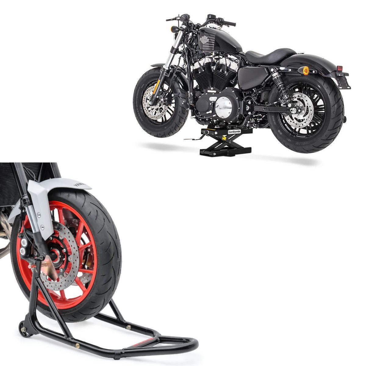 Lieferumfang: Hebebühne Mini-Lift Scherenheber bis 500kg in schwarz + Montageständer Vorderrad Motorradständer vorne