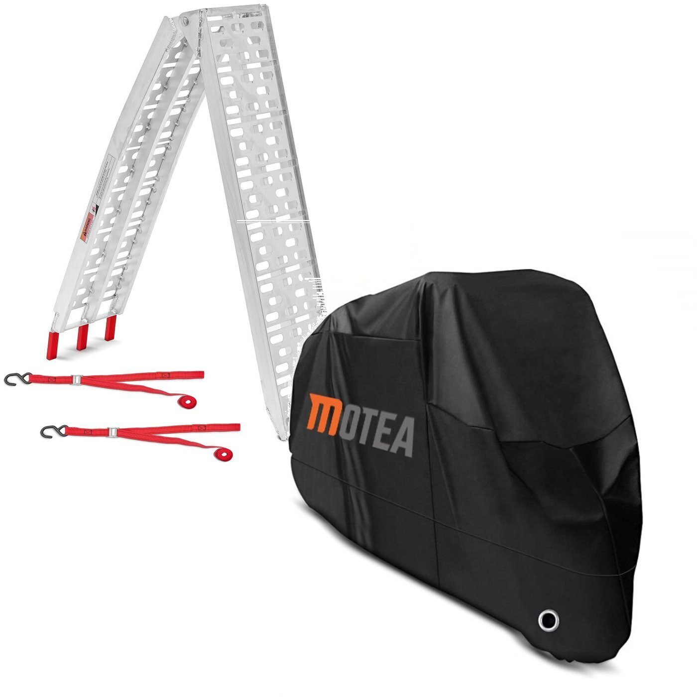 Motorradheber Set: Motorrad Auffahrrampe bis 340 kg Alu-I klappbar # mit Motorrad Ab