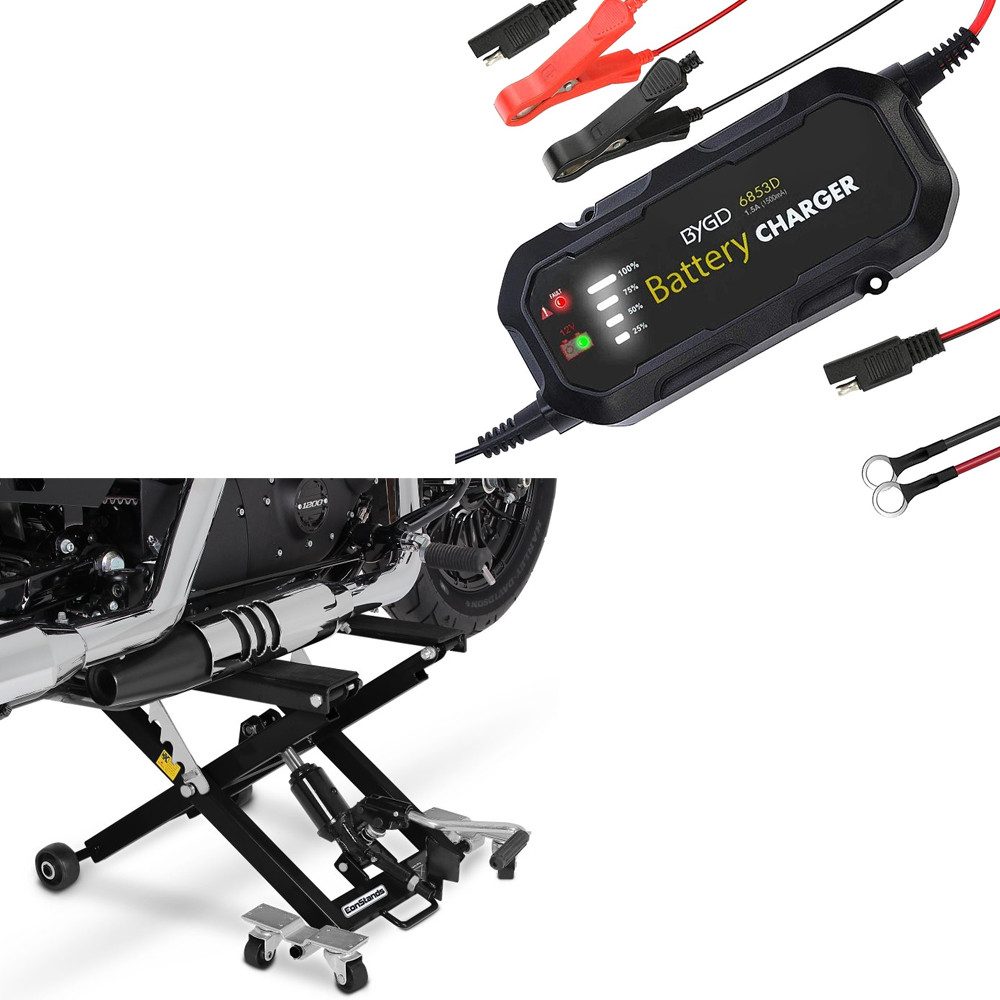 Motorradheber Set: Motorrad Hebebühne Mid-lift XL bis 500kg sw # mit Motorrad Batter