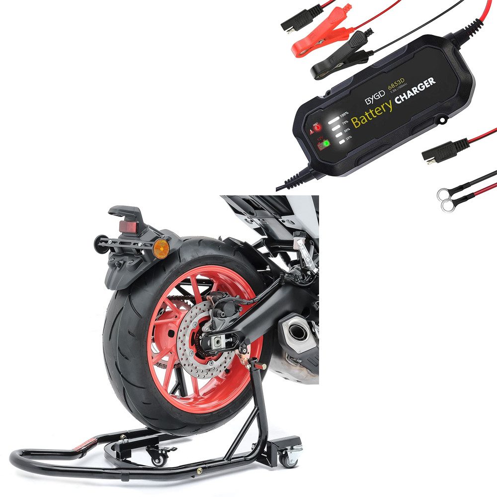 Motorradheber Set: Rangierhilfe Hinterrad Mover 2 Racing sw matt # mit Motorrad Batt