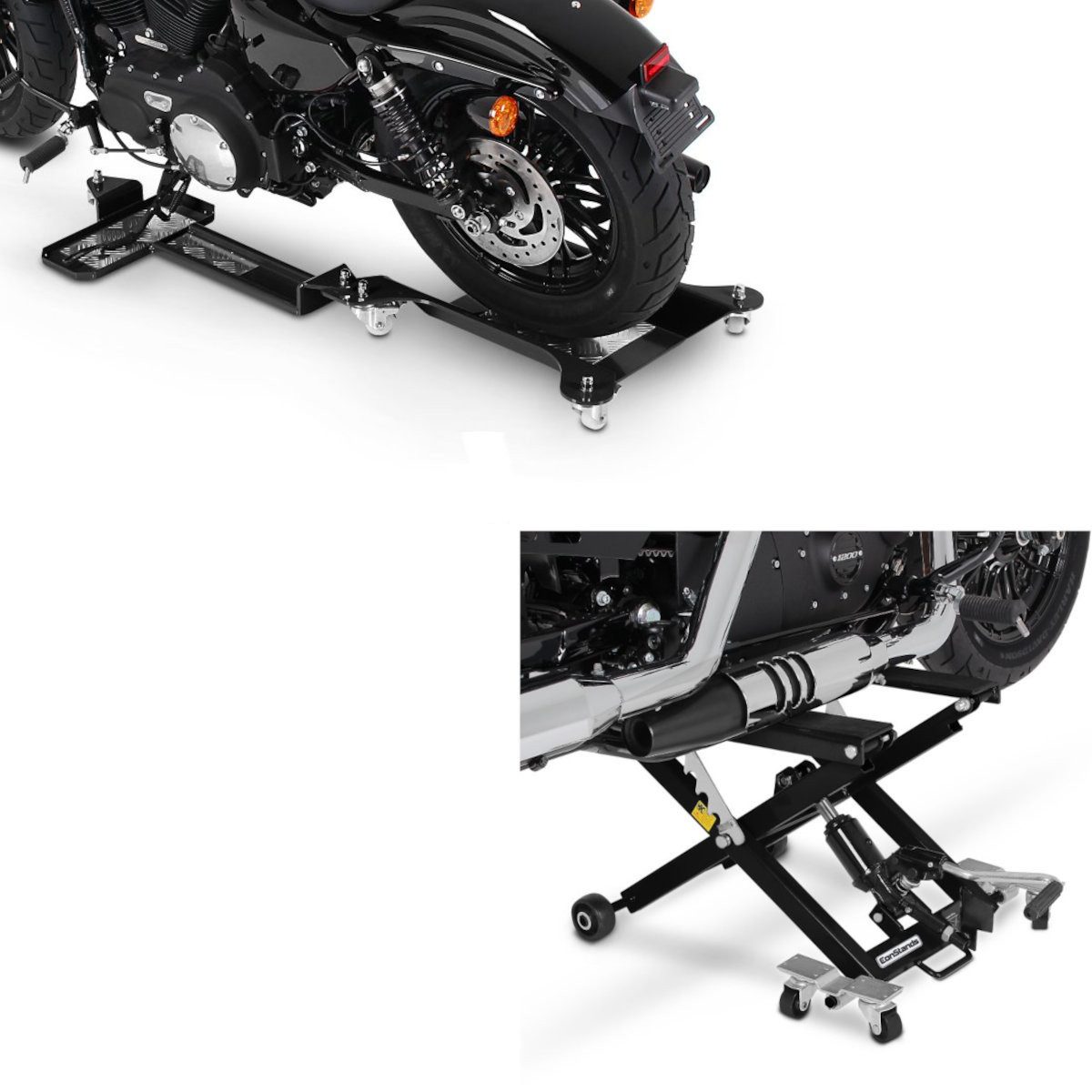 Lieferumfang: Rangierhilfe für Seitenständer M2 Mover bis 400 kg von schwarz + Hebebühne Midlift XL heber bis 500kg in schwarz
