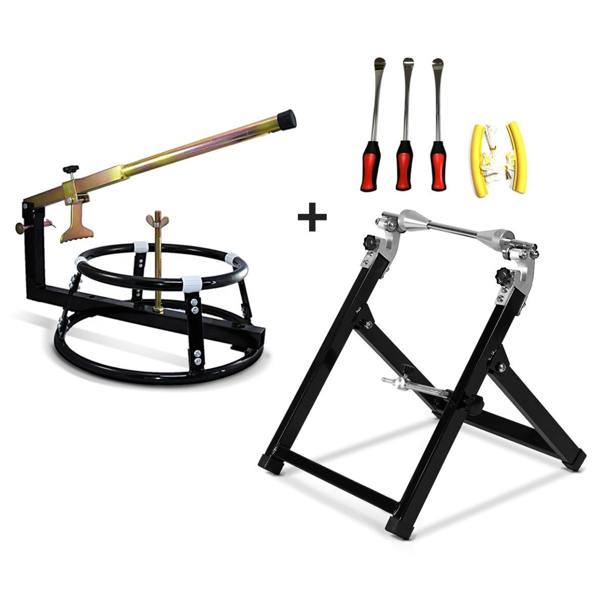 • Set bestehend aus 1x Motorrad Reifenmontiergerät, 1x Wuchtbock Motorrad und Reifen Montiereisen und Felgenschoner Set