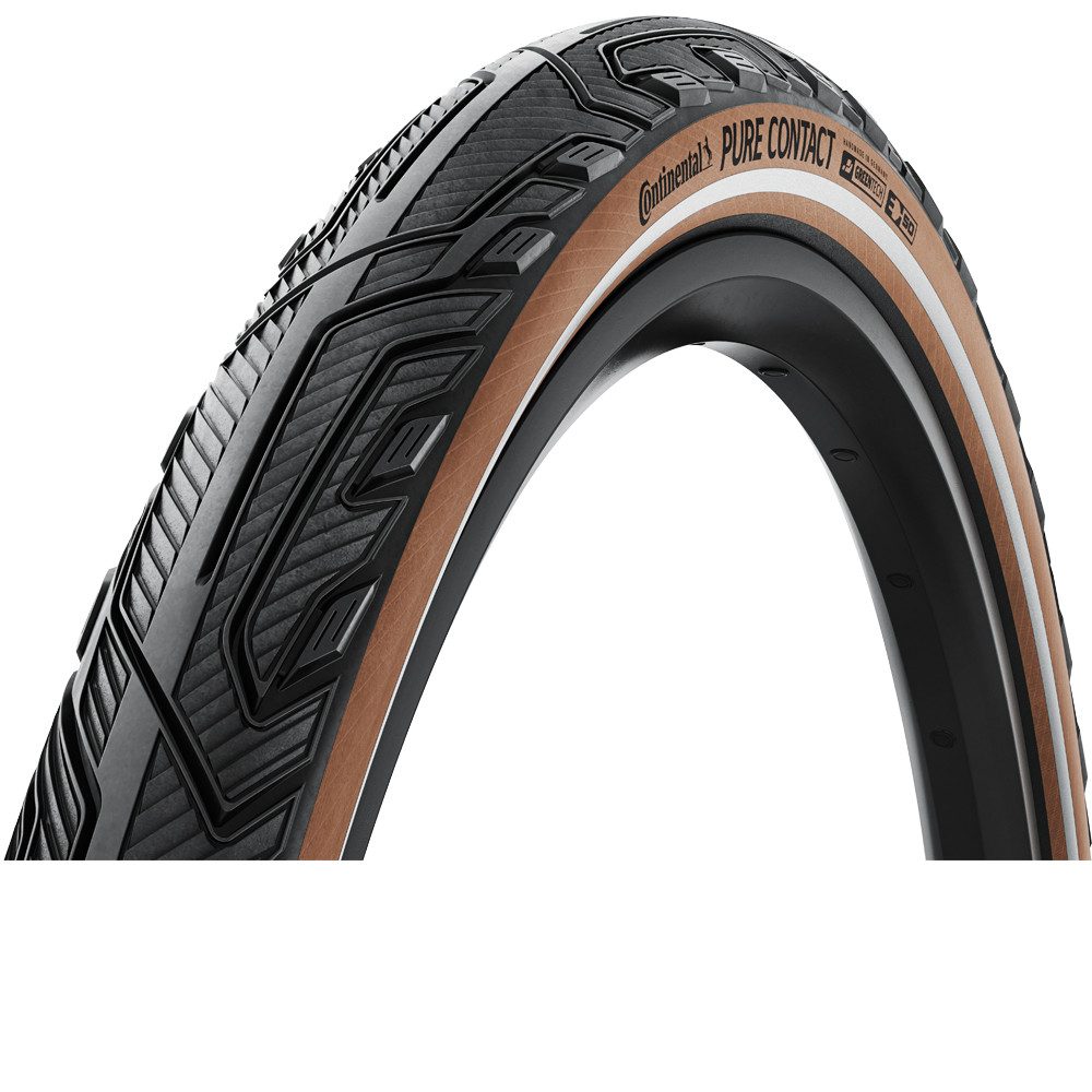 Pure Contact falt - E-50 Urban Reifen BUILT TOUGH TO RIDE SMOOTH Entwickelt für urbane Radfahrer, die sicher pendeln, einkaufen und die Umgebung erkunden wollen. Die innovative Kombination aus den Breaker-Technologien Vectran und PolyX hebt den Pannenschutz auf ein völlig neues Niveau und wird dank Gummi aus verantwortungsvollen Quellen und mehr Naturstoffen nachhaltiger hergestellt. Sonstiges Gewicht: 689 gram Zusätzliche Angaben: * graphit-Reflex * handmade in Germany Marke: Continental Lieferumfang: Reifen ETRTO: 55-584 ETRTO: Innendurchmesser: 584 ETRTO: Breite: 55 Art: Faltreifen Farbe / Dekor: schwarz Druck (Bar): 2,5 - 4,0 Pannenschutz: Ja Reflexstreifen: Ja Größe: 27.5 x 2.20 Technologie: E50 Diese Reifen besitzen das ECE-R 75 Prüfzeichen, welches den Einsatz auch an schnellen E-Bikes bis 50 km/h zulässt. Für ihre E-Bike-Reifen greift Continental auf über 100 Jahre Erfahrung bei Moped- und Motorradreifen zurück. Все ihrer City-/Trekking-Reifen erreichen mindestens den Standard bis 25 km/h. Die mit E50 gekennzeichneten Reifen sind auch für S-Pedelecs zugelassen. Mit ihrem hochwertigen Aufbau verfügen sie über einen hohen Pannenschutz, niedrigen Rollwiderstand und Schutz vor frühzeitigem Verschleiß durch die zusätzlich wirkende Antriebskraft. Vectran Breaker Pannenschutz at its best Vectran wird aus dem Flüssigkristallpolymer Vectra gesponnen. Dadurch entsteht ein thermoplastisches, mehrfaseriges Garn. Zum Vergleich: Dieses teilkristalline Gewebe ist schnittfester als Aramid und besitzt eine fünfmal höhere Zugfestigkeit als Stahl. Ein Vectran Breaker ist leichter, flexibler und schützt effektiver vor Schnitten als vergleichbare Nylon-Breaker. Der Rollwiderstand wird dabei nicht negativ beeinflusst. PolyX Breaker Hieb und stichfest Mit dem PolyX Breaker® bringt Continental PKW-Know-How ins Fahrradreifensegment: Polyester wird seit Jahren erfolgreich in Autoreifen eingesetzt und hat sich vielfach bewährt. Die extrem widerstandsfähige Polyesterfaser wird engmaschig über Kreuz gewebt. Dadurch wird eine sehr hohe Gewebedichte erreicht, die den Breaker nicht nur widerstandsfähig gegenüber Fremdkörpern, sondern besonders resistent gegen Durchstiche macht. Farbe Seitenwand: Braun