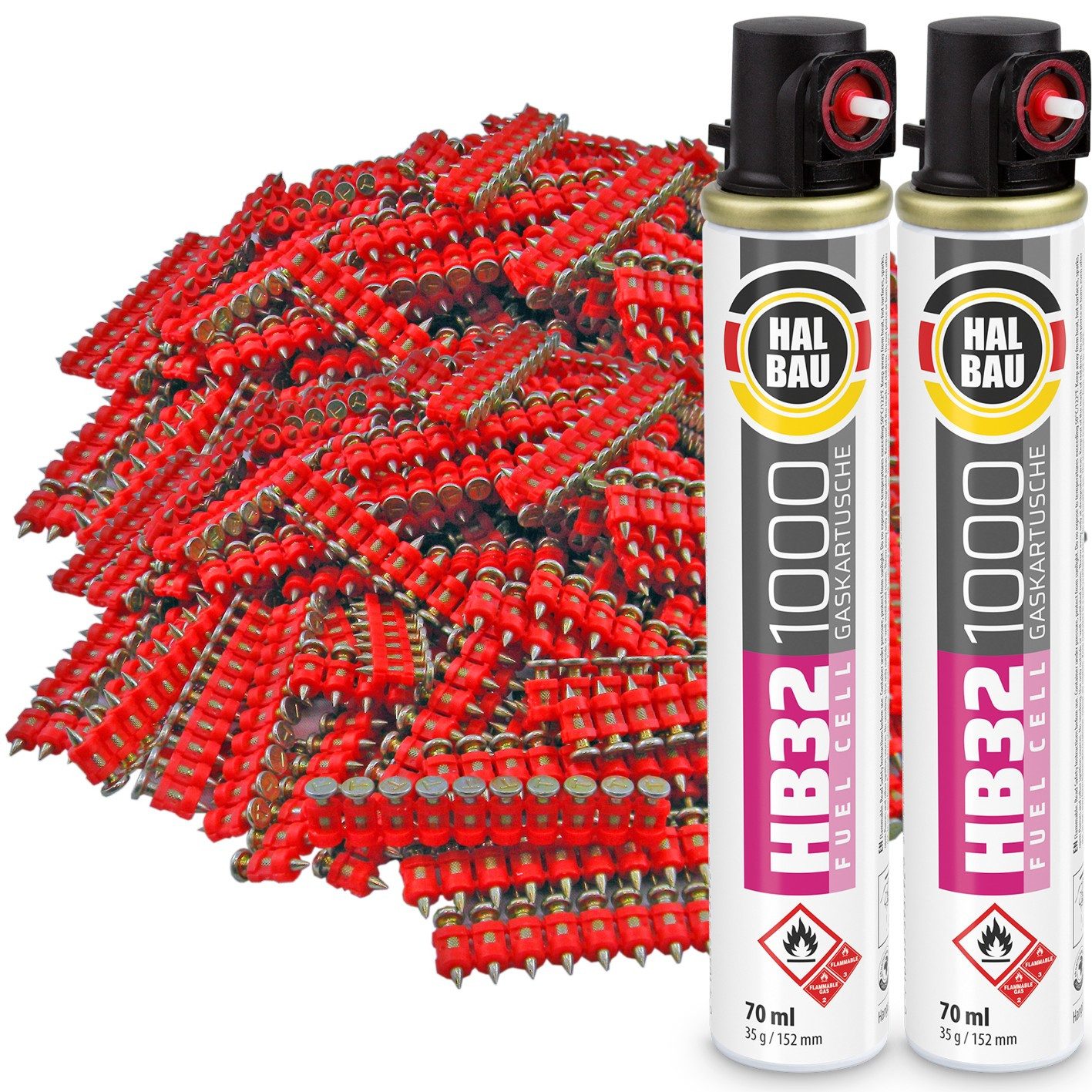 Nagel Gaskartusche HB32 x 2 St. + Betonnägel 15mm 2000 St HB42