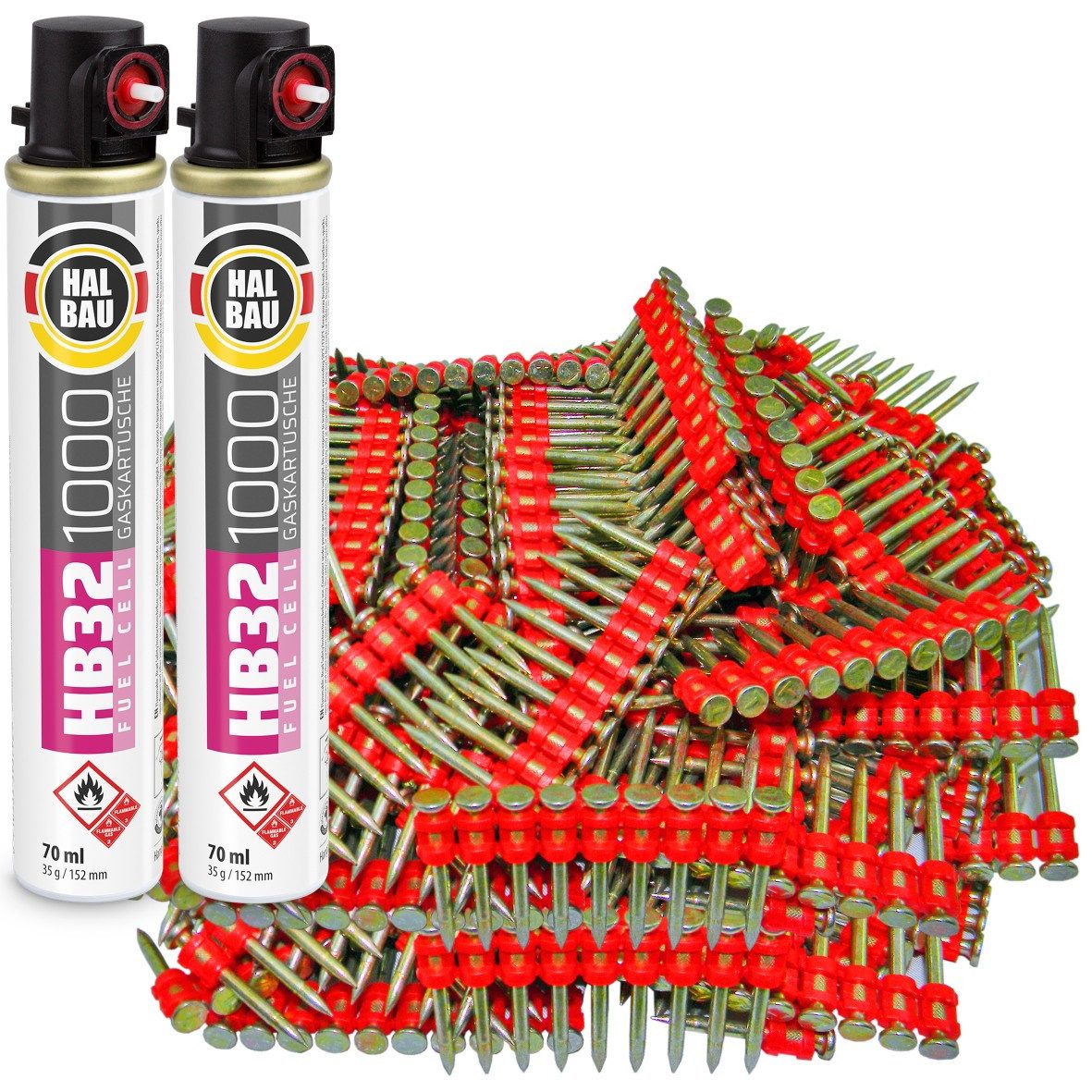 Gaskartusche mit Eckventil für gasbetriebene Setzgeräte für Stahl und Beton. Es ist ein effizientes mit 100% synthetischem Öl geschmiertes Gas, das ein reibungsloses Betreiben von Geräten gewährleistet. Das hochreine Gas sorgt dafür, dass es im Magazin zu keinen Ablagerungen kommt. Die hohen Leistungsparameter machen den Setzvorgang effizienter. Keine Ausfallzeiten durch Aufladen. Die mit Gas versorgten Hochdruckgeräte sind zum Versetzen von gehärteten, mittels Plastik magazinierten Nägeln vorgesehen, die im Lieferumfang bestückt je 10 Stück auf Band verpackt werden.