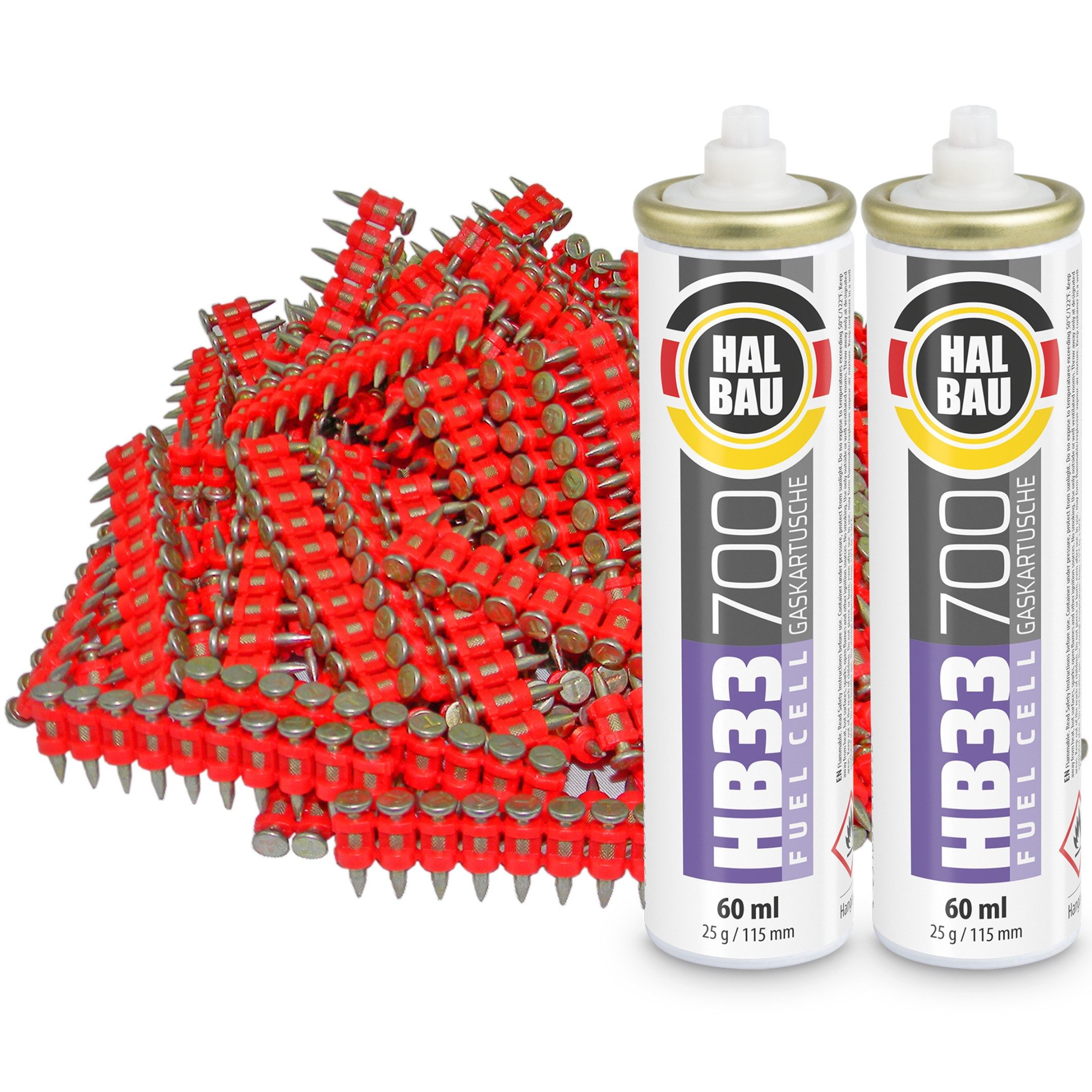 Nagel Gaskartusche HB33 x 2 St. + Betonnägel 19mm 2000 St