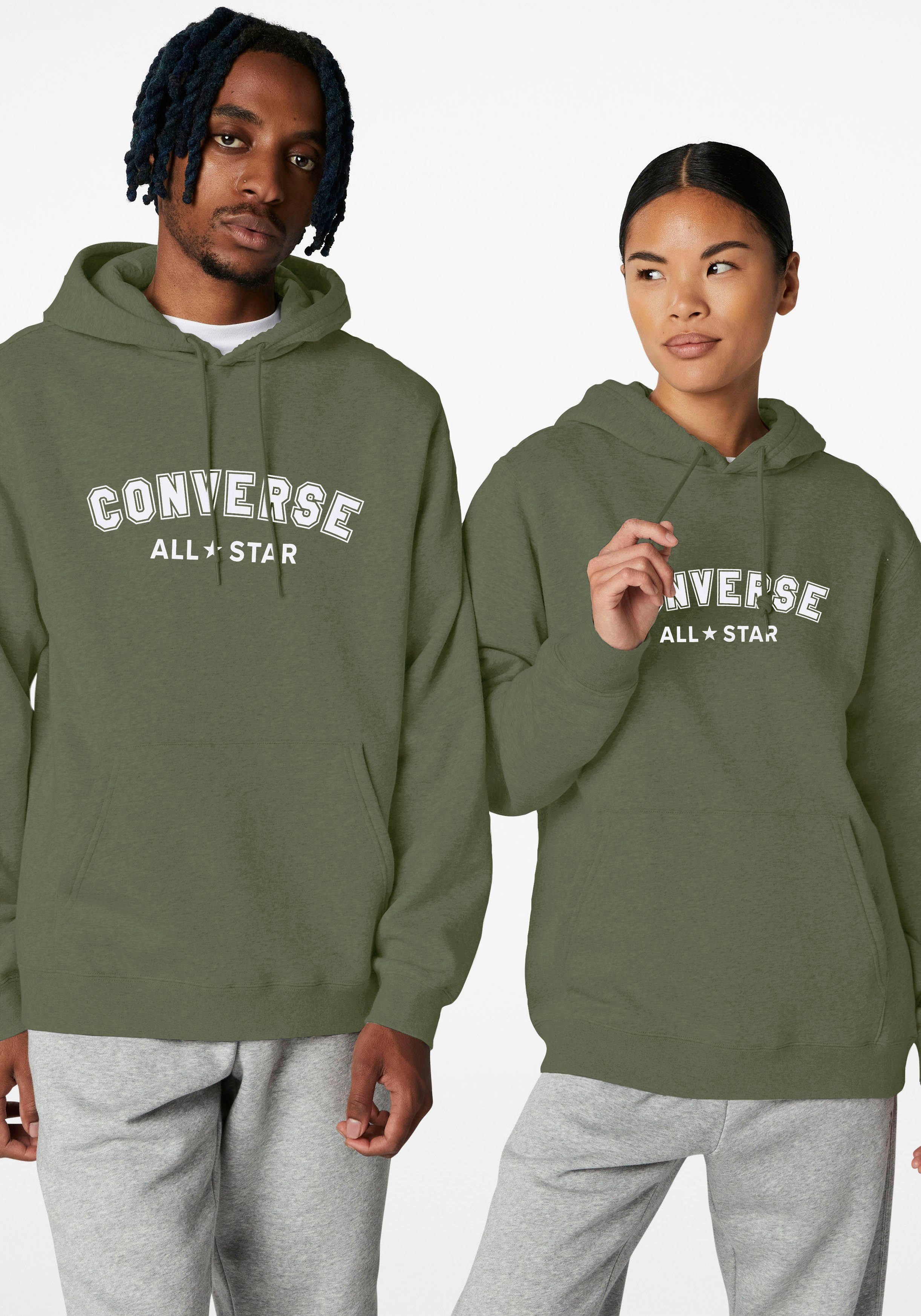 Mit dem Sweatshirt »UNISEX WORDMARK BRUSHED BACK FLEECE« von Converse kannst du sportlich durchstarten. Das Sweatshirt hat eine Kapuze. Sie hat einen Kordelzug, um die Kapuzenweite zu verstellen.
