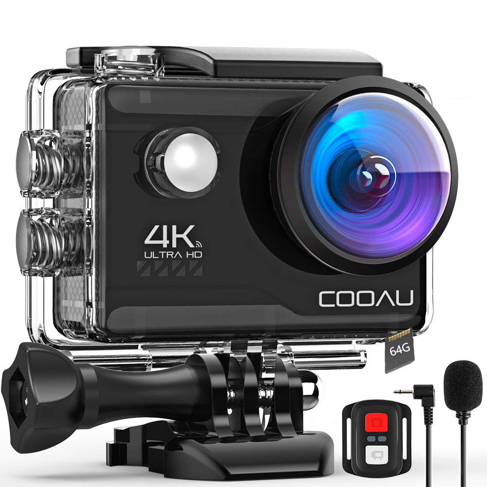 COOAU 4K Action Cam 20MP 40M Unterwasserkamera WiFi 170 ° Weitwinkel Action Cam (HD 4K, EIS Bildstabilisator Helmkamera 170° Weitwinkel Camcorder, 2.4G Fernbedienung, 2 Akkus und 16 Zubehör Kit Externem Mikrofon)