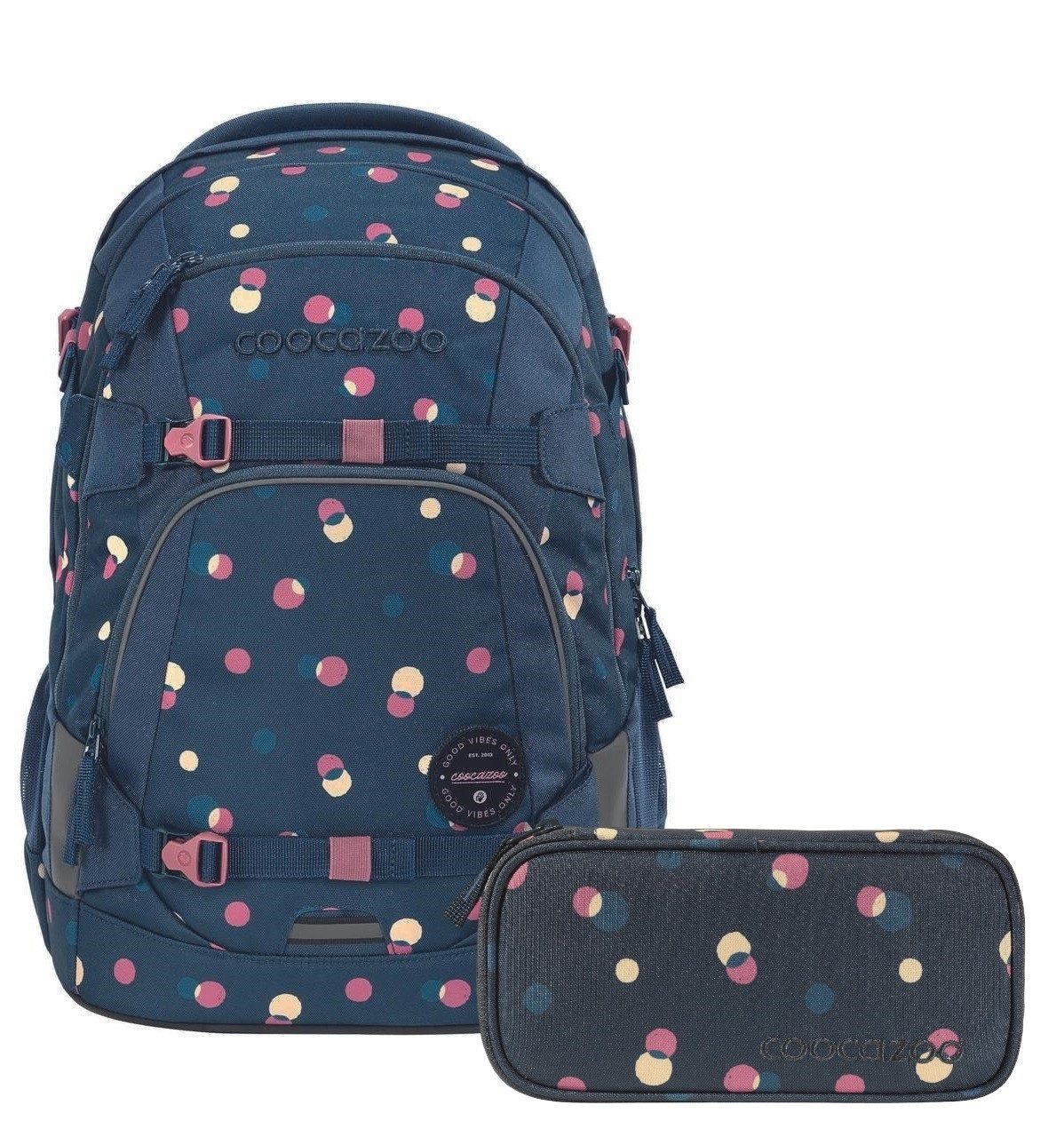 MATE - der Allrounder. Geeignet ist der Rucksack ab der 5. Klasse. Mehrere Fächer ermöglichen es, alle Schulutensilien geordnet und griffbereit zu verstauen: zwei Hauptfächer mit einem Bücherfach, ein Organizerfach, eine Fronttasche und zwei Netz-Außentaschen. Durch das Easy-Grow-System lässt er sich problemlos auf die aktuelle Rückenlänge einstellen (Körpergröße von 135 - 180 cm). Ein einfacher Drehmechanismus, mit entsprechender Skala, ermöglicht die Höhenverstellung der Schulterträger (während das Kind den Rucksack trägt). Durch die Riemen auf Schulterhöhe und die Kompressionsriemen an den Seiten lässt sich das Gewicht nah am Rücken verteilen. Um eine optimale Stabilisierung und Entlastung der Schultergelenke zu gewährleisten, verfügt der Ranzen über einen höhen- und längenverstellbaren Brustgurt. Durch diese Funktion wird das Gewicht gleichmäßig verteilt und die Schultern entlastet. Darüber hinaus sorgt die Pull-Forward Funktion des breiten Hüftgurtes dafür, dass das Gewicht des Ranzens auf das stabile Becken deines Kindes gelagert wird. Das atmungsaktive und gepolsterte Rückenteil ermöglicht eine gute Luftzirkulation. Durch den standfesten sowie gepolsterten Rucksackboden, bekommt der Rucksack einen festen Stand. Reflektierende Flächen sorgen für mehr Sichtbarkeit auf dem Schulweg. Für noch mehr Sicherheit am Schulweg kann ein zusätzliches LED-Stecklicht an der Schultasche befestigen werden. Die Herstellung erfolgt PVC-frei, sowie aus 34 recycelten PET-Flaschen (0,5 l). Wasserabweisend, Polyester mit 100% PFC-freier und bluesign-zertifizierter Beschichtung.
