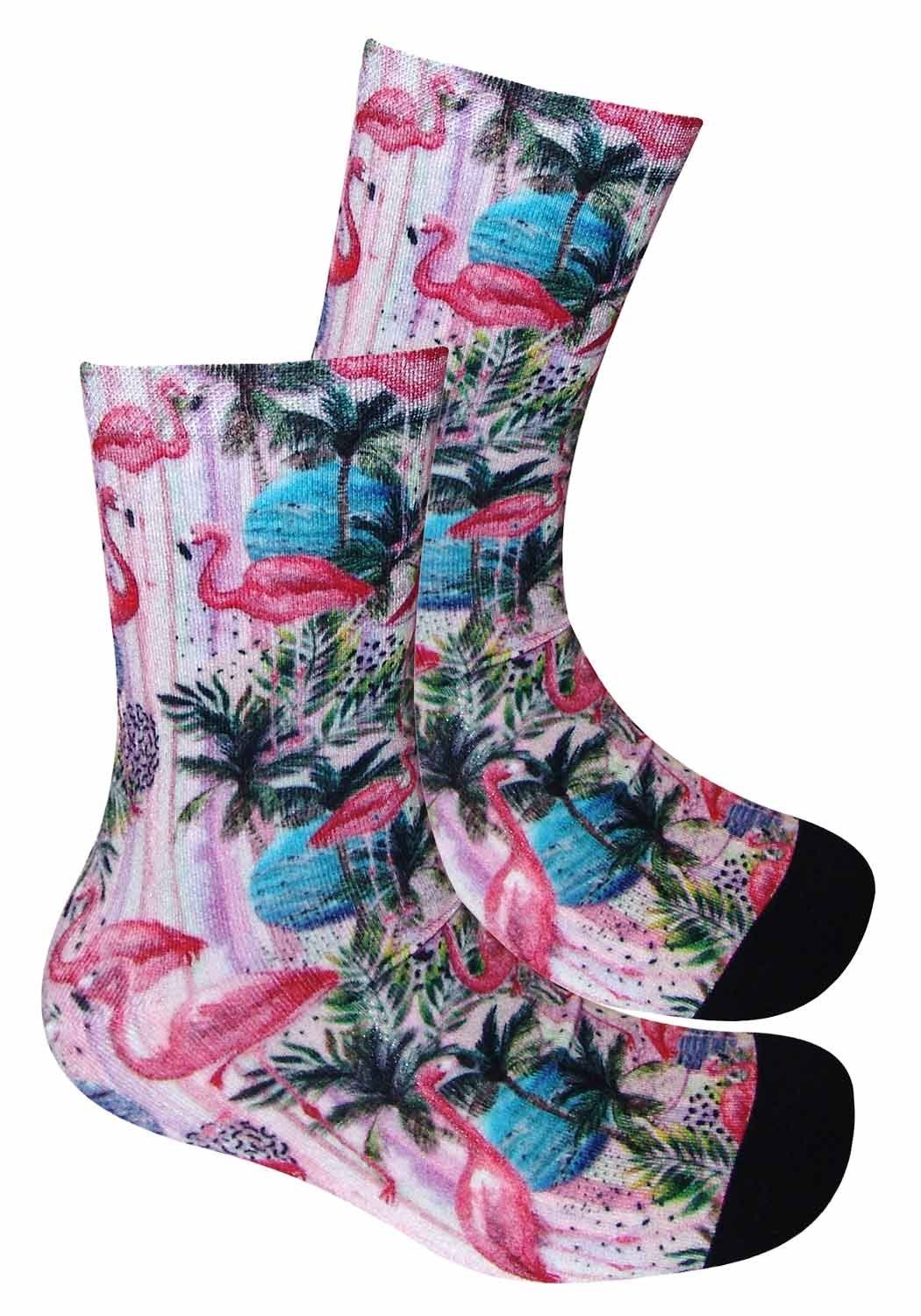 Nichts für graue Mäuse! Diese farbig rund bedruckten bunten Damen Socken Pink Flamingo von COOL7 werden alle Blicke auf sich ziehen. Überzeugen Sie sich von der hohen Qualität, der umweltfreundlichen Verarbeitung und dem aufwendigen Design unserer COOL7 3 D Print Socks.
