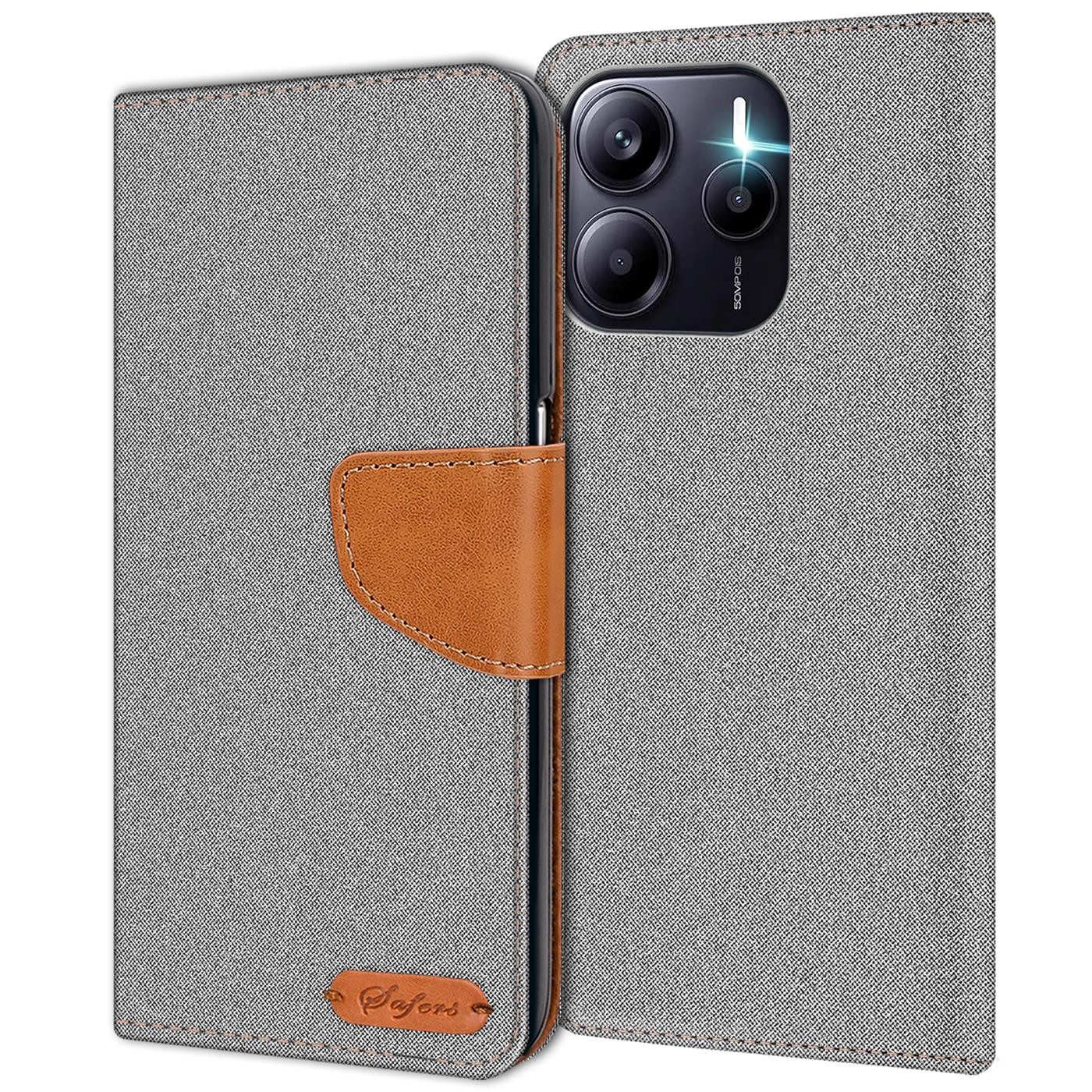 Keine Lust mehr auf Kunstleder oder Plastik? Du möchtest lieber mal was neues ausprobieren? Das Bookcase im trendigen Jeans Design ist ein kompletter Gegensatz zu vielen auf dem Markt erhältlichen Handytaschen. Der Polsterstoff der Außenhülle sorgt für eine angenehme Haptik und verleiht deinem Xiaomi Redmi Note 14 5G ein geschmackvolles Aussehen. Die zarten Akzente im cognac-farbenen Kunstleder unterstützen das schicke Design und setzen dein Handy gekonnt in Szene. Die Halteschale aus flexiblem Silikon hält das Gerät fest umschlossen und ermöglicht dennoch die Nutzung aller Anschlüsse und Ports. Das robuste Case sorgt für einen Rundumschutz und sichert neben allen Kanten und Ecken auch das empfindliche Display. Das Material wirkt stoßabweisend und sichert dein Smartphone erfolgreich vor wertmindernden Schäden. Auf der Innenseite bietet das Cover Platz für Kreditkarten und Co, sie fungiert somit als idealer Geldbeutel-Ersatz. Ein weiterer Vorteil dieser stilvollen Handyhülle ist die integrierte Aufstellfunktion.