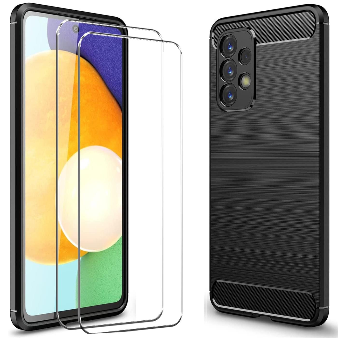 Schützen Sie Ihr Samsung Galaxy A53 5G mit unserem hochwertigen TPU-Case im trendigen Carbon-Look und profitieren Sie von unserem Set-Angebot, das zusätzlich zwei Panzerglas-Displayschutzfolien umfasst. Ideal für den Alltag und entwickelt, um die Lebensdauer Ihres Smartphones zu verlängern.