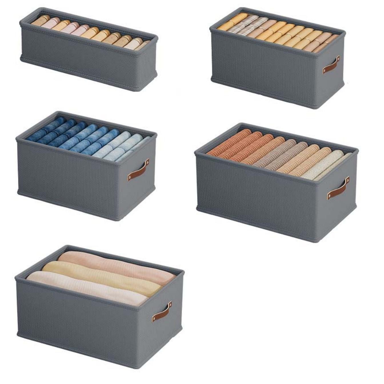 Wäscheschrank-Organizer: Der Drawer Clothes Organiser ist mit Ledergriffen ausgestattet, die stärker und haltbarer sind als herkömmliche Griffe, macht leicht, ein bestimmtes Element auf einen Blick zu finden, und die Zuglasche kann Ihnen helfen, die Box ohne jede Anstrengung herausziehen.