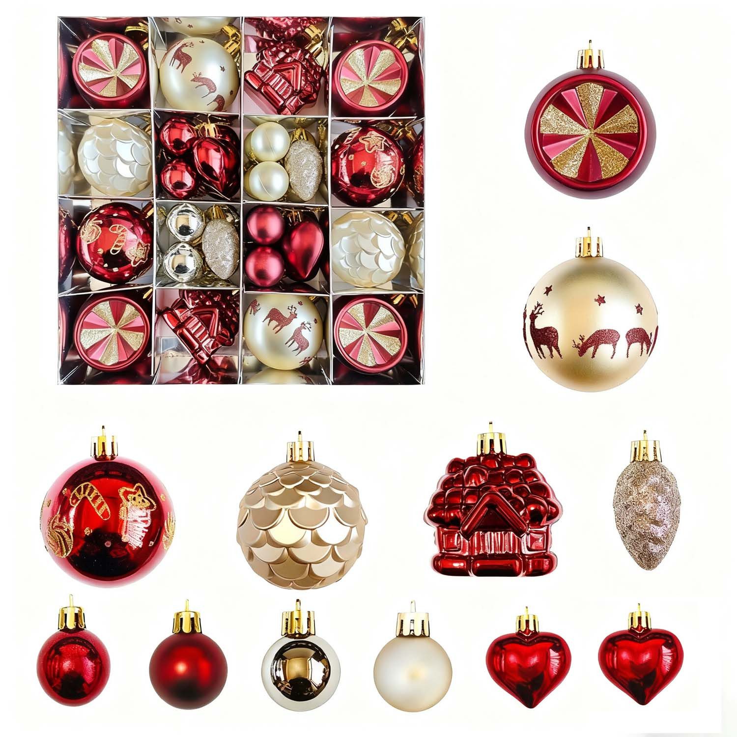 Perfect Xmas Ornaments BallsChristmas Mini-Kugeln können in einer Vielzahl von Gelegenheiten dekoriert werden, wie Haus, Garten, Hochzeit, Einkaufszentrum, Hotel, Café, Bürogebäude oder Restaurant.Und die roten und goldenen Weihnachtskugeln passen auch gut zu Ihren Weihnachtsstrümpfen, Weihnachtsbaumröcken, Weihnachtsbaumtoppern, Girlanden, Kränzen, Naturszenen, Weihnachtsdörfern, die mehr Raffinesse zu Ihrer Weihnachtsdekoration hinzufügen können.