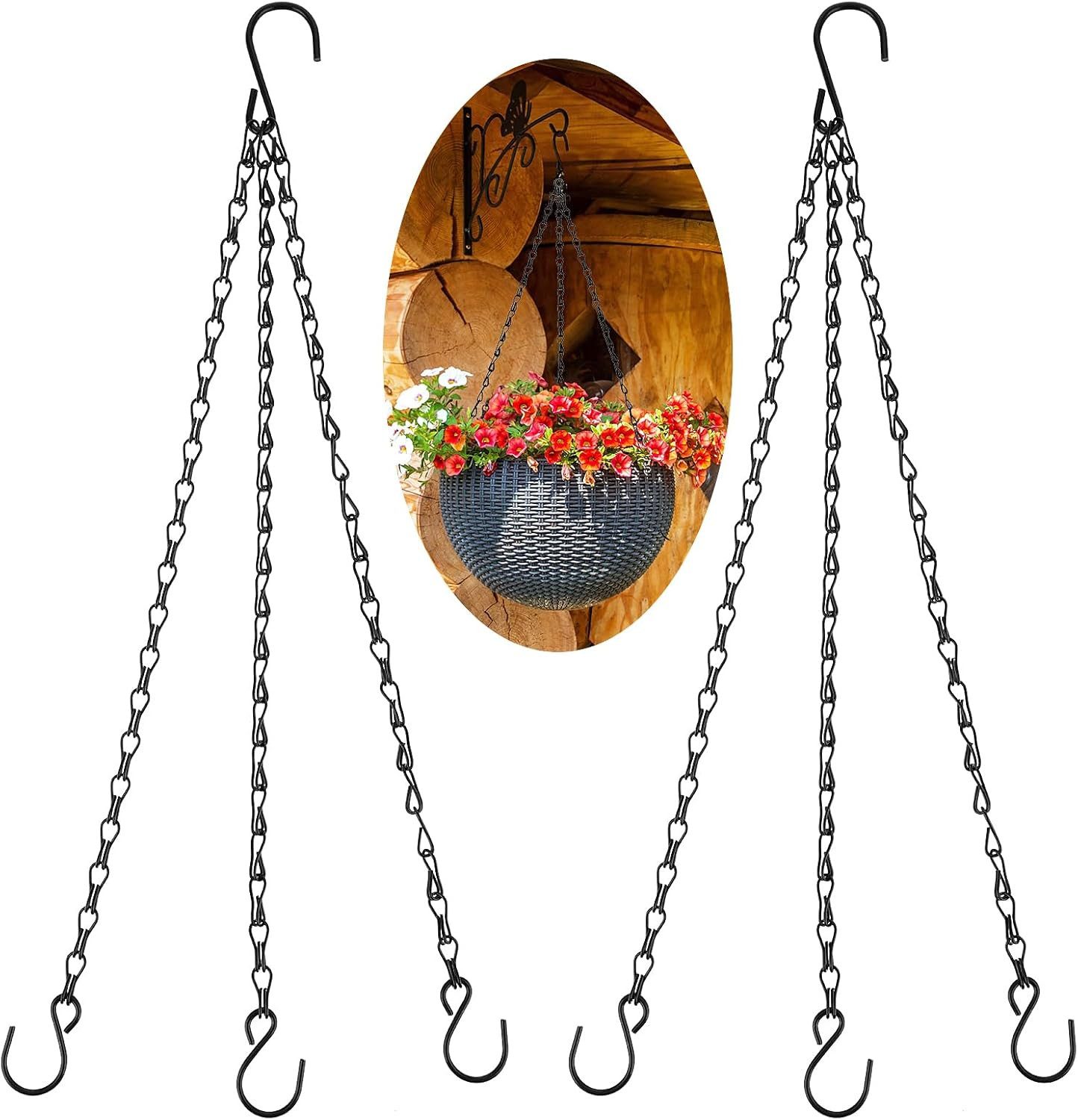 MAXIMALES EMPFOHLENES GEWICHT: Die schwarze 3-Punkt-starke Hängekorbkette empfiehlt ein maximales Gewicht von etwa 13 Pfund. Sie wird häufig zum Aufhängen von Pflanzgefäßen, Blumentöpfen oder Blumenkörben verwendet und ist ein besserer Ersatz für die Kunststoffaufhänger an Ihren Hängetöpfen