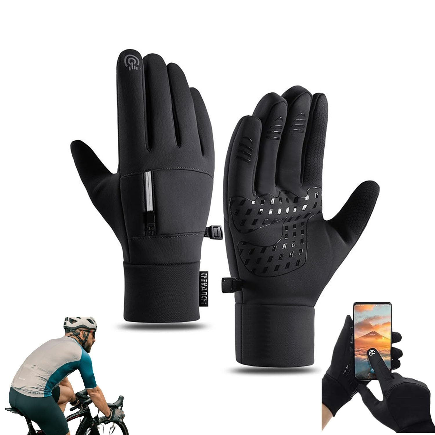 Die Außenschicht der winddichten Handschuhe besteht aus hochwertigen winddichten Materialien. Das Innenfutter ist aus warmem Fleece und einer wasserdichten Beschichtung gefertigt, um Ihre Hände bei Schnee oder leichtem Regen stets trocken und warm zu halten.