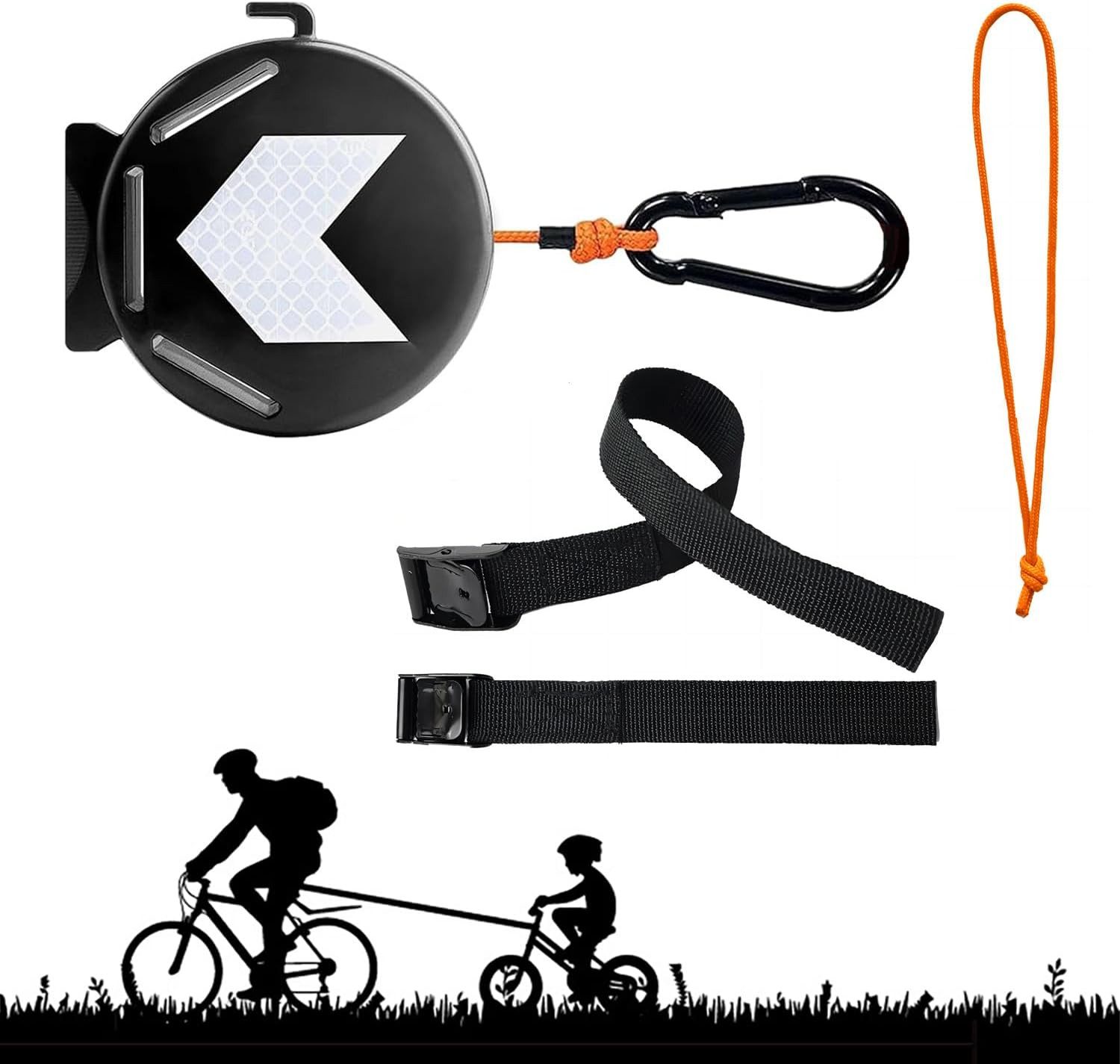Ausziehbares Fahrrad-Abschleppseil: Das Kinder-Fahrrad-Abschleppseil ist mit einem automatischen Rückzugsmechanismus ausgestattet. Die Schnur zieht sich bei nachlassender Spannung schnell zurück, verhindert effektiv ein Verheddern und erhöht so die Sicherheit beim Fahren. Das Seil kann an jeder Fahrradsattelstütze befestigt werden und verbindet das Erwachsenenrad mit dem Kinderrad.