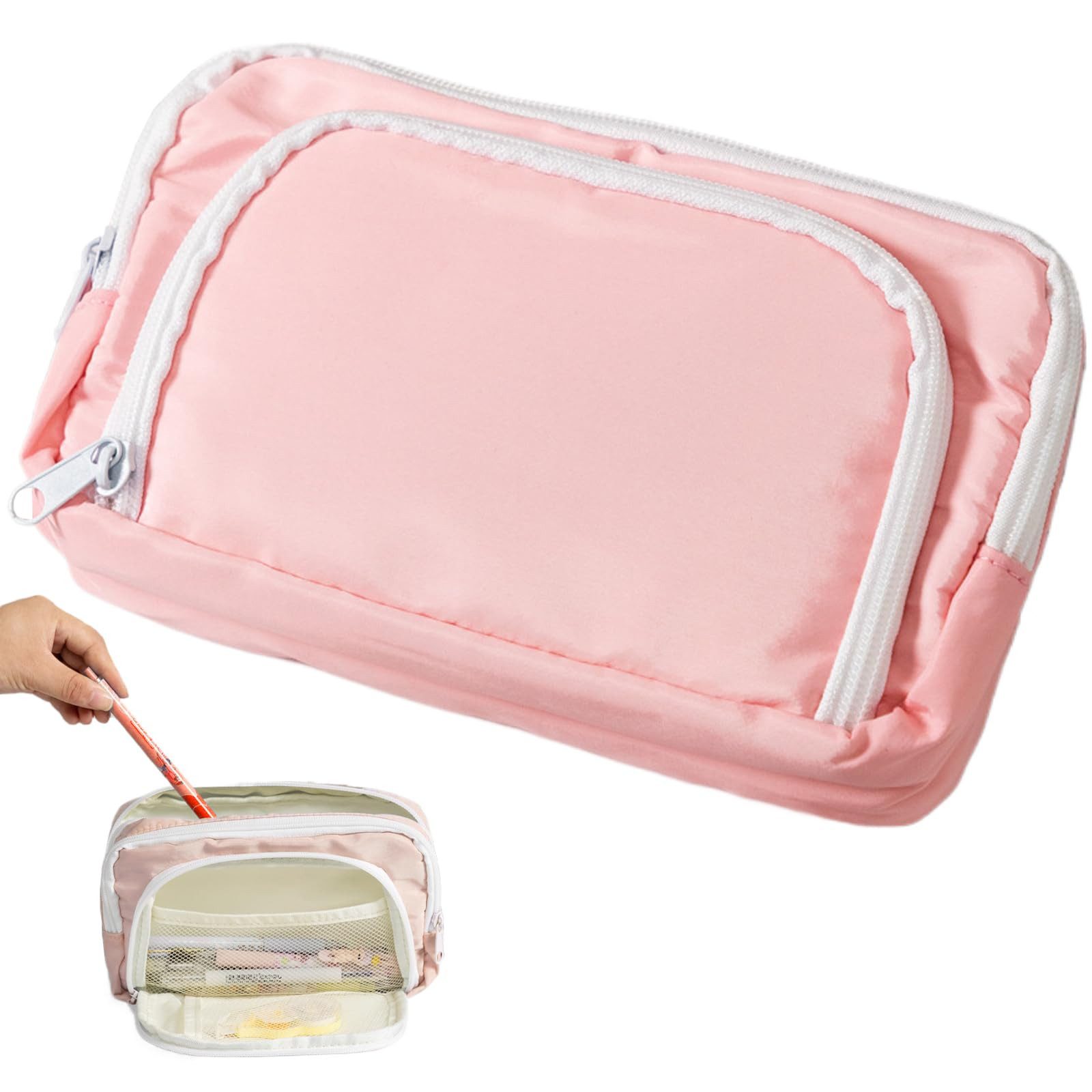 Verbessern Sie Ihre Organisation mit unserem großen Federmäppchen. Es bietet bequem Platz für bis zu 40 Stifte. Das Mäppchen verfügt über drei gut strukturierte Reißverschlussfächer und eine praktische Netztasche im Inneren für kleine Utensilien. Ob Sie eine zuverlässige Aufbewahrungslösung für Schule, Büro oder Privat benötigen – dieses vielseitige Mäppchen erfüllt alle Ihre Anforderungen. Es ist auch ein schönes Geschenk für alle, die Wert auf Funktionalität und Eleganz bei ihren Alltagsgegenständen legen.