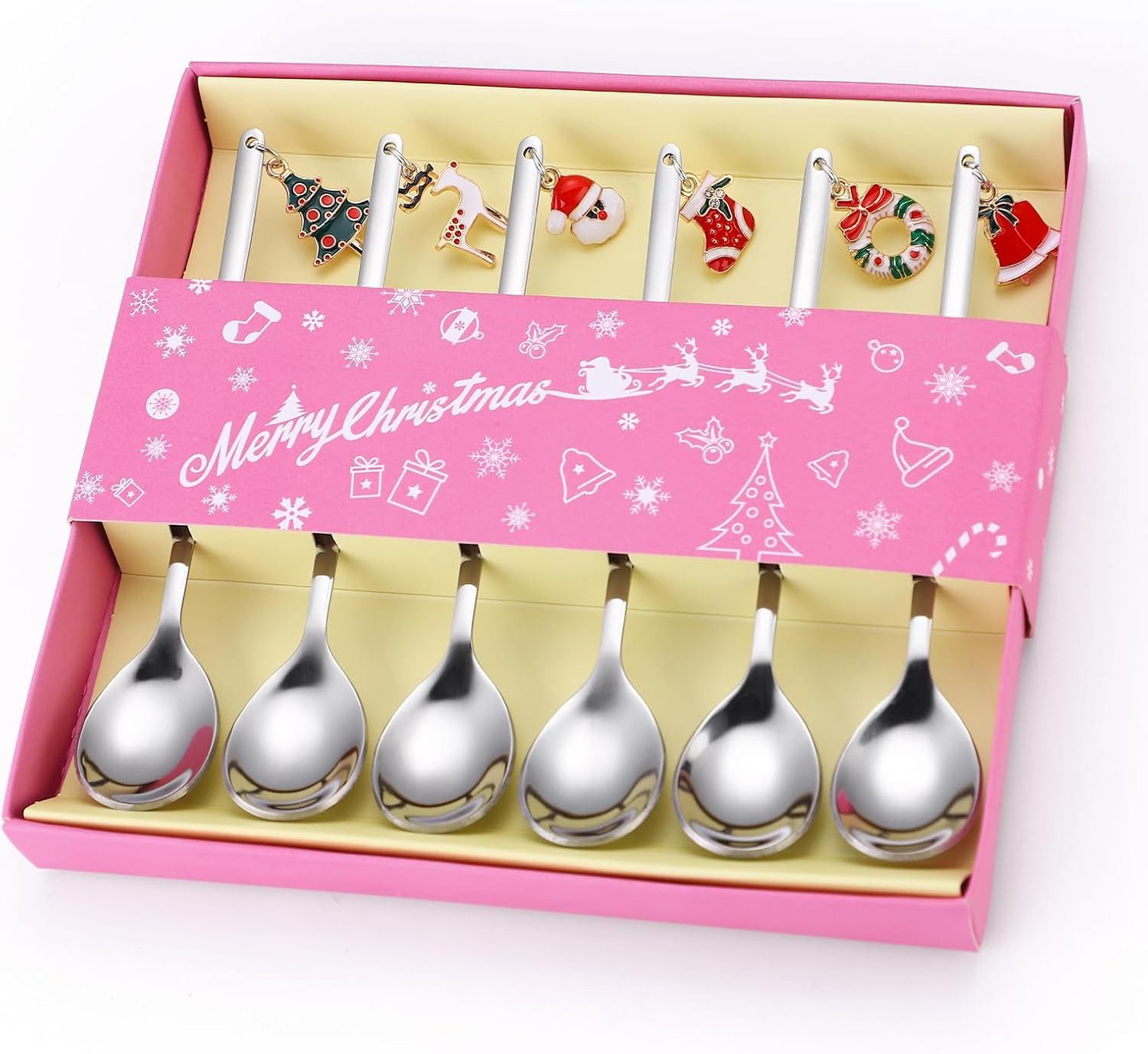 Nicht nur ideal zum Umrühren von Kaffee und Heißgetränken, sondern auch für Kuchen, Desserts, Pudding, Eis und andere Kleinigkeiten. Die filigranen Weihnachtsanhänger und die polierte Edelstahloberfläche machen die Löffel zu einem Blickfang auf jedem Festtagstisch – sei es bei Familienfeiern, Büro-Snacks oder Dessertbuffets auf Partys.