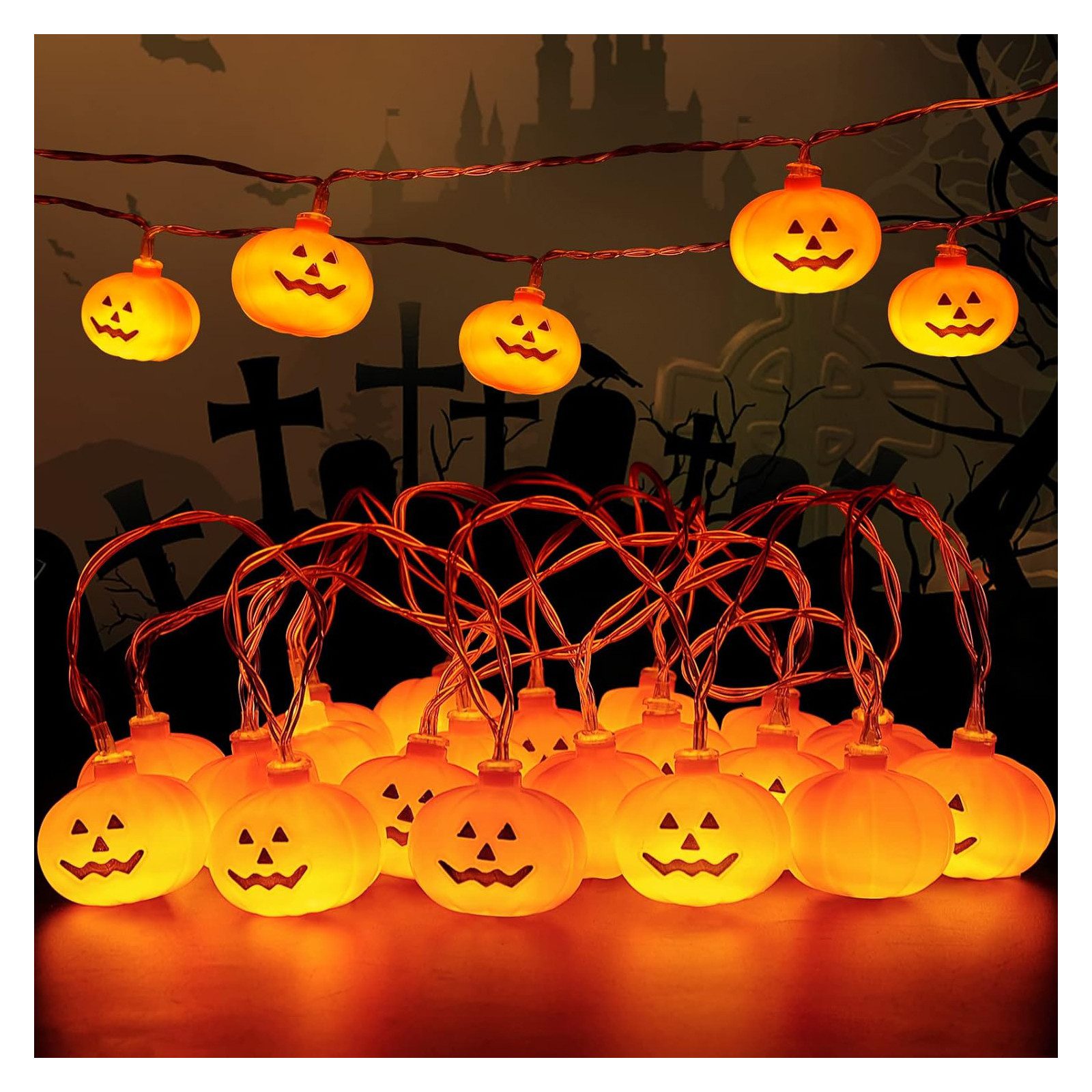 Jede Kürbislaterne der Lichterkette besteht aus strapazierfähigem PVC-Material, das die Flexibilität und Festigkeit der Laternen erhöht und ihre Lebensdauer verlängert. Die integrierten LED-Lichter der neuen Generation bieten nicht nur eine sanfte, angenehme Helligkeit, sondern auch eine längere Lebensdauer. Der Abstand zwischen den Laternen beträgt 20 cm, mit einer Gesamtlänge von 6 Metern, was den meisten Dekorationsanforderungen entspricht.
