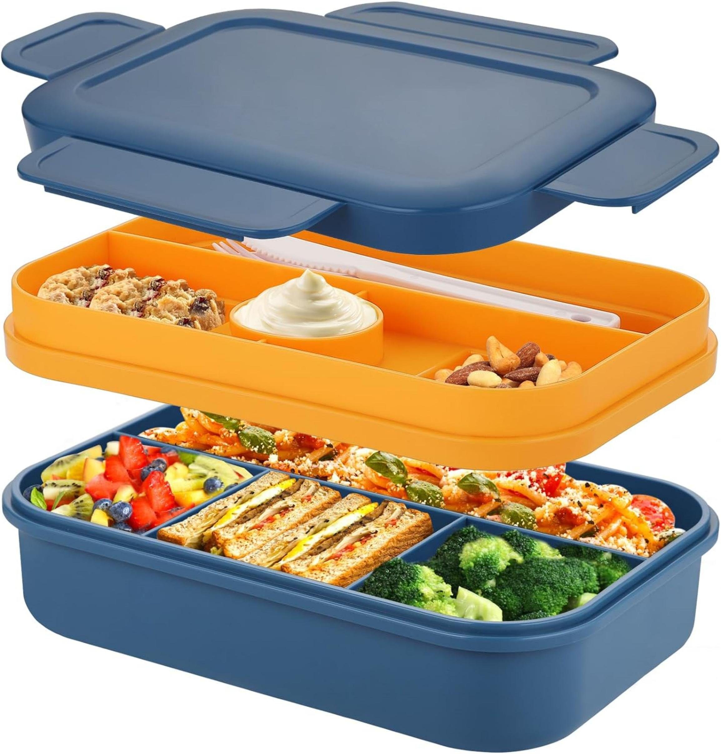 Mikrowelle, Gefrierschrank und Spülmaschine SicherUnsere auslaufsichere brotdose erwachsene mit fächern kann im Gefrierschrank aufbewahrt, in der Mikrowelle erhitzt und in der Spülmaschine gewaschen werden, um Ihre kostbare Zeit zu sparen. Entfernen Sie den Deckel beim Erhitzen, vermeiden Sie, dass der Dampf, der während des Erhitzens erzeugt wird, nicht abgeleitet werden kann, weil der Deckel zu dicht ist.