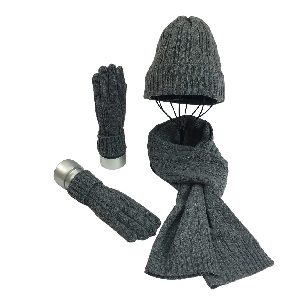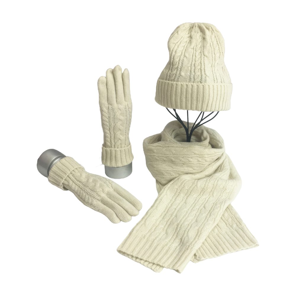 Unser winterliches Strick-Set aus Mütze, Schal und Handschuhen ist aus feinster, weicher Wolle gewebt und fühlt sich ultraweich und luxuriös an. Die kabelgestrickte Wollkonstruktion macht es kuschelig und angenehm zu tragen.