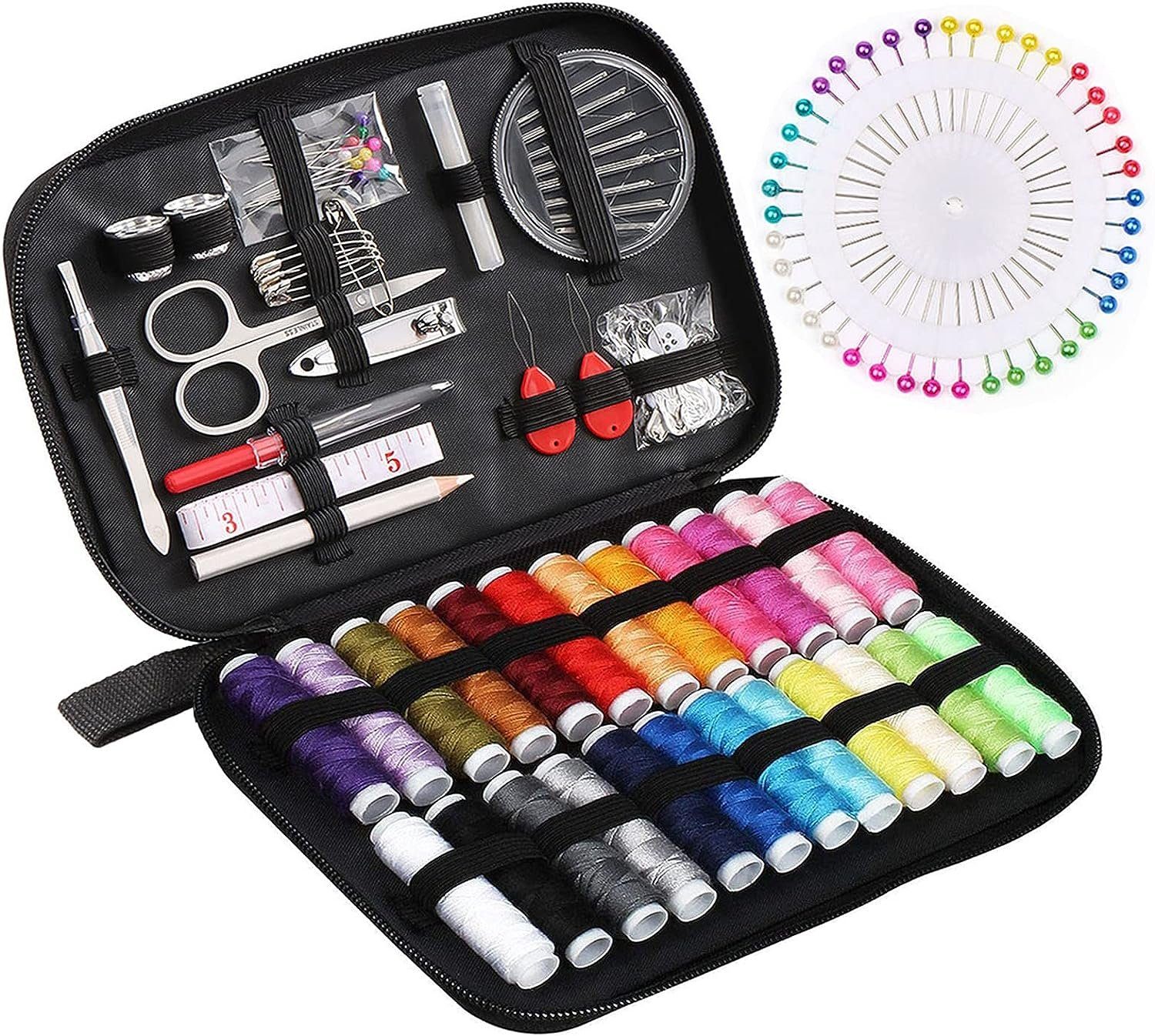 Всеs-in-einemEin komplettes Nähset enthält alle Werkzeuge, die Sie für grundlegende Reparaturen benötigen, einschließlich 24 farbiger Spulen, 30 hochwertiger verschiedener Nadeln, einer robusten Edelstahlschere, einem Maßband und schönen Perlnadeln, usw.