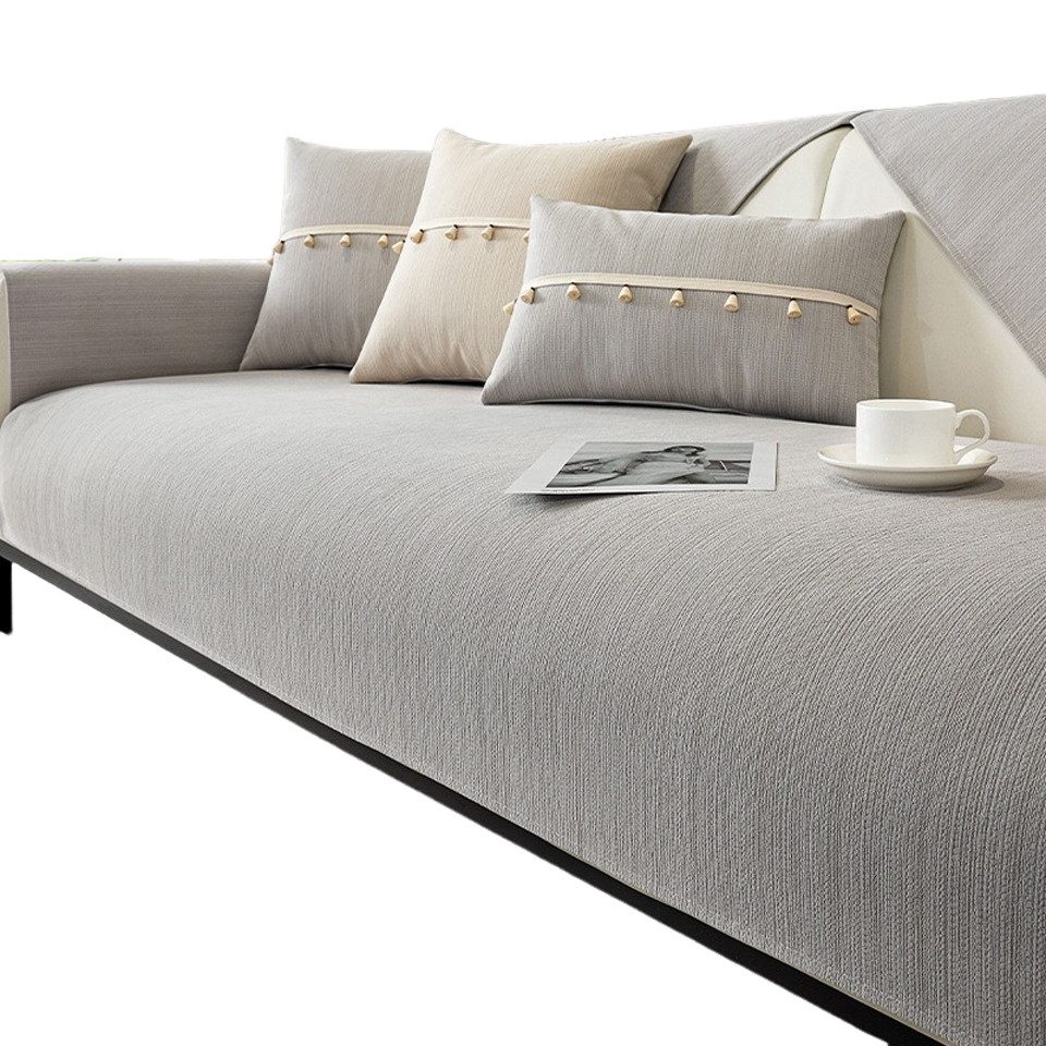 HOCHWERTIGES MATERIAL: Der Couchbezug besteht aus Chenille-Material, der weich, warm und komfortabel ist, feine Verarbeitung, langlebig, modisch und schön, macht das Sofa künstlerischer und befriedigt Ihre Wohndekorationsbedürfnisse.Die Rückseite der couchbezug ist mit rutschfesten Latexpartikeln ausgestattet, die weich und kompakt sind und Verschiebungen verhindern. Es kann das Sofa vor Flecken und Kratzern schützen.