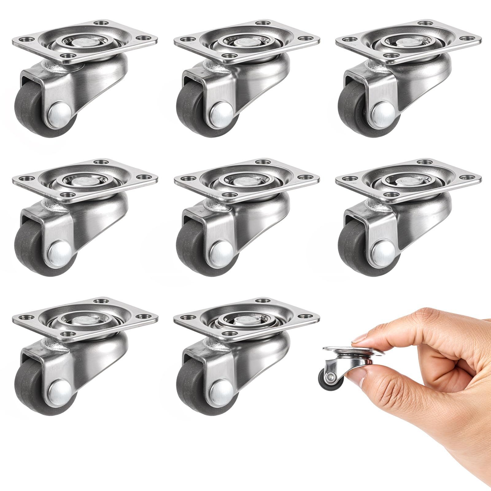 Kleine LenkrollenLenkrollen aus weichem Gummi sind leicht. Praktische Lenkrollen eignen sich für Bürostühle, Bücherregale und Haushaltsgeräte und sorgen für eine effiziente Raumaufteilung. Rollenrollen-Oberteil mit quadratischer Stütze: 1 × 0,9 Zoll / 2,6 × 2,3 cm. Höhe: 0,78 Zoll / 2 cm. Raddurchmesser: 0,5 Zoll / 1,2 cm