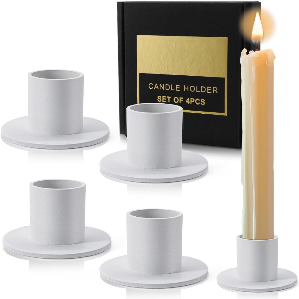 Robust und stabil Dieser Kerzenhalter ist aus hochwertigem Metall gefertigt, die mattWeiß Oberfläche ist sorgfältig behandelt, langlebig, korrosionsbeständig und rostfrei, nicht leicht zu verblassen. Die runde Basis ist stabiler, wenn sie auf einer flachen Oberfläche wie einem Tisch platziert wird, nicht leicht zu kippen, während sie tropfendes Wachsöl auffängt und den Tisch sauber hält.
