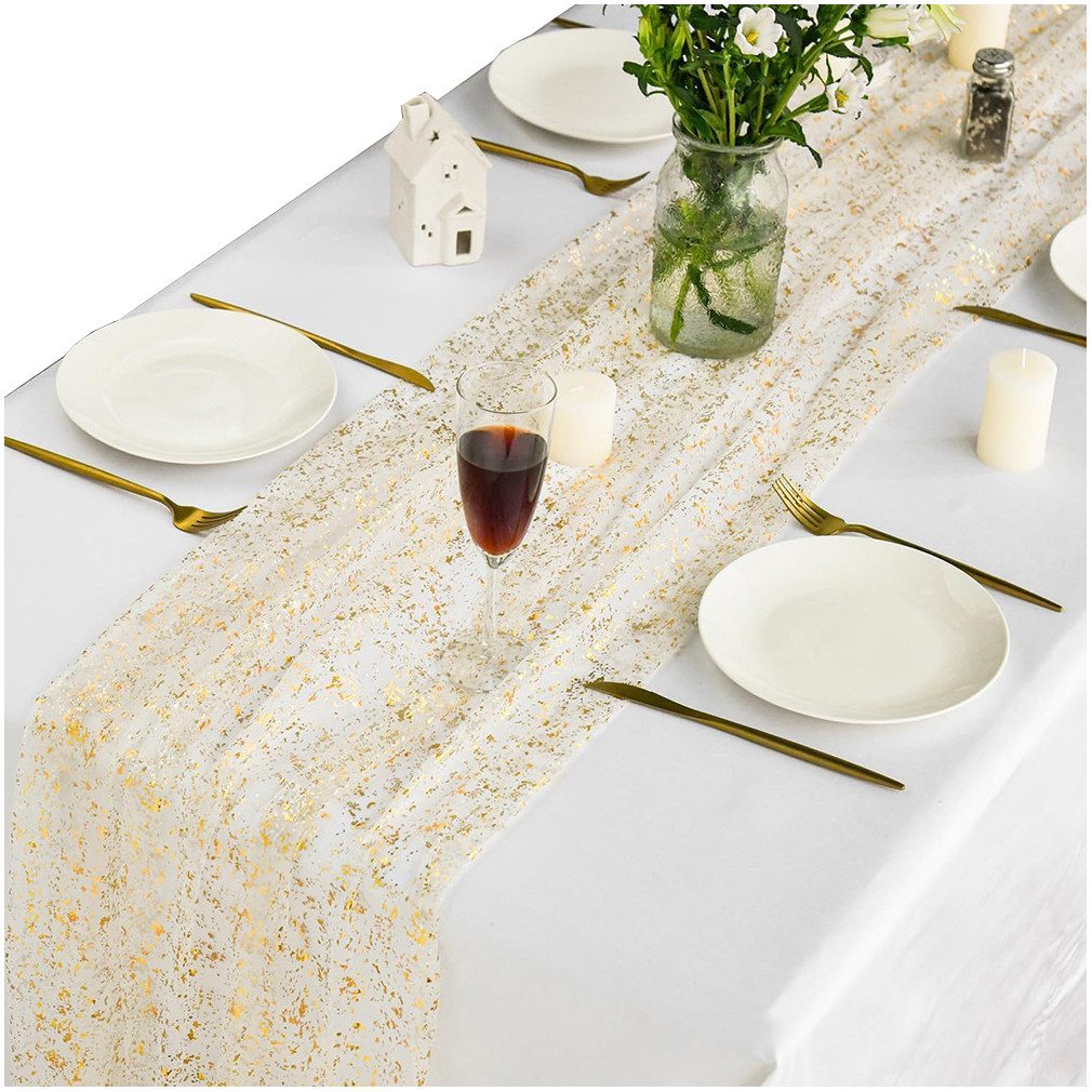 Vielseitige Dekoration für alle Anlässe: Diese goldene Tischdecke eignet sich nicht nur für den Esstisch, sondern kann auch an Fenstern, Pavillons oder Hochzeitsbögen aufgehängt werden. Sie eignet sich auch hervorragend für die Dekoration von Stuhlbändern, Partyhintergründen und mehr, um das visuelle Erlebnis jeder Veranstaltung zu erhöhen. Sie ist auch eine ideale Geschenkverpackung, die Ihre Geschenke noch kreativer und bedeutungsvoller macht.