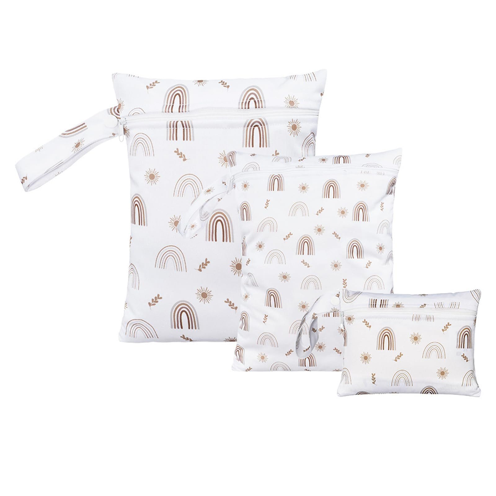 Bequeme Trageweise, durchdachtes Design: Jeder Wetbag ist mit einem Tragegriff und einem Druckknopf ausgestattet, der es ermöglicht, ihn am Kinderwagen, Türgriff, Handtuchhalter und anderen Orten aufzuhängen. So haben Sie Ihre Hände frei und können den Beutel überall hin mitnehmen.