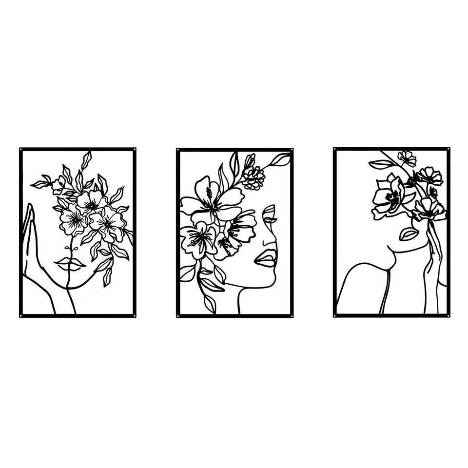 3-teiliges Metall-Wanddekoration Set – Abstrakte, Feminine Kunst für Ihr Zuhause